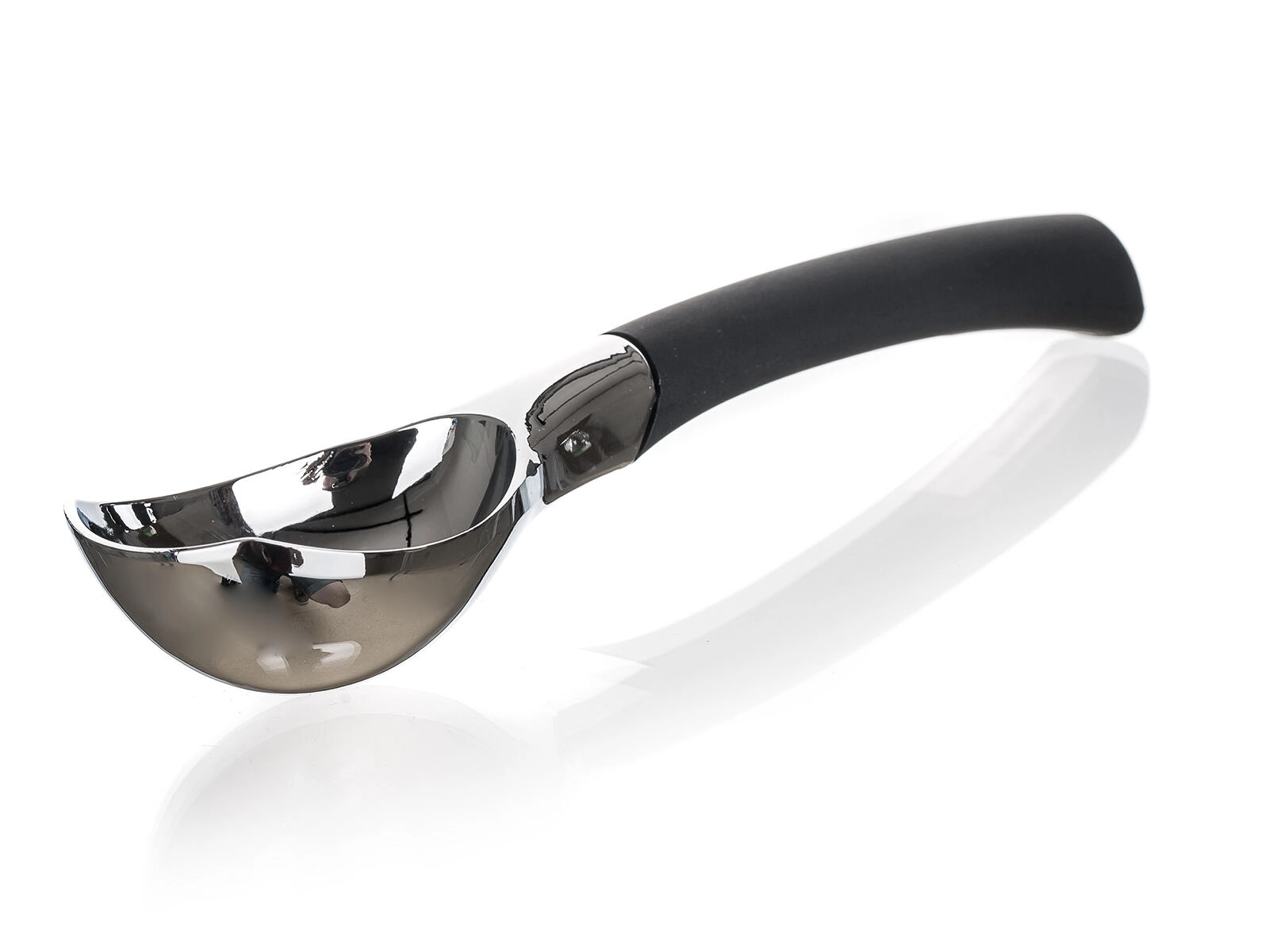 Polerowana metalowa głowica marki Tinto z chromowaną powierzchnią z łatwością kroi nawet twarde lody i formuje ładne, okrągłe gałki bez przywierania.