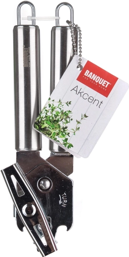 Praktyczny otwieracz do konserw AKCENT z klasycznym skrzydełkowym mechanizmem do szybkiego i wygodnego otwierania. Wykonany z wysokiej jakości stali nierdzewnej, oferuje długą żywotność, a dzięki oczku do zawieszenia jest zawsze pod ręką. Odpowiedni do użytku profesjonalnego i domowego.