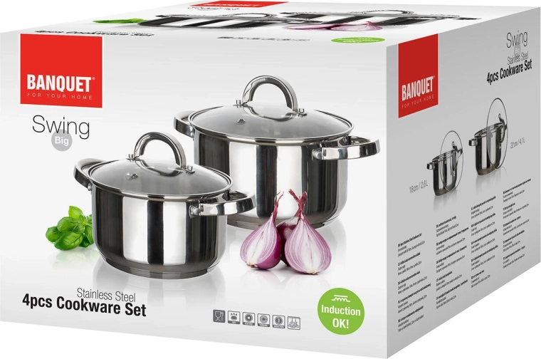 Zestaw naczyń SWING zapewnia niezawodną wydajność i elegancki wygląd do każdej kuchni. Dwa praktyczne rozmiary garnków pokrywają większość codziennych potrzeb – od dodatków po zupy. Szklane pokrywki z zaworem pary umożliwiają kontrolę gotowania bez zbędnego podnoszenia wieka.