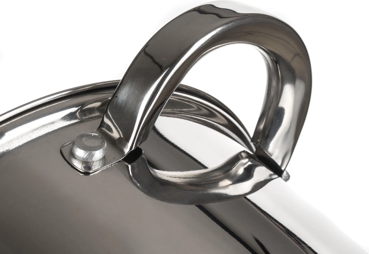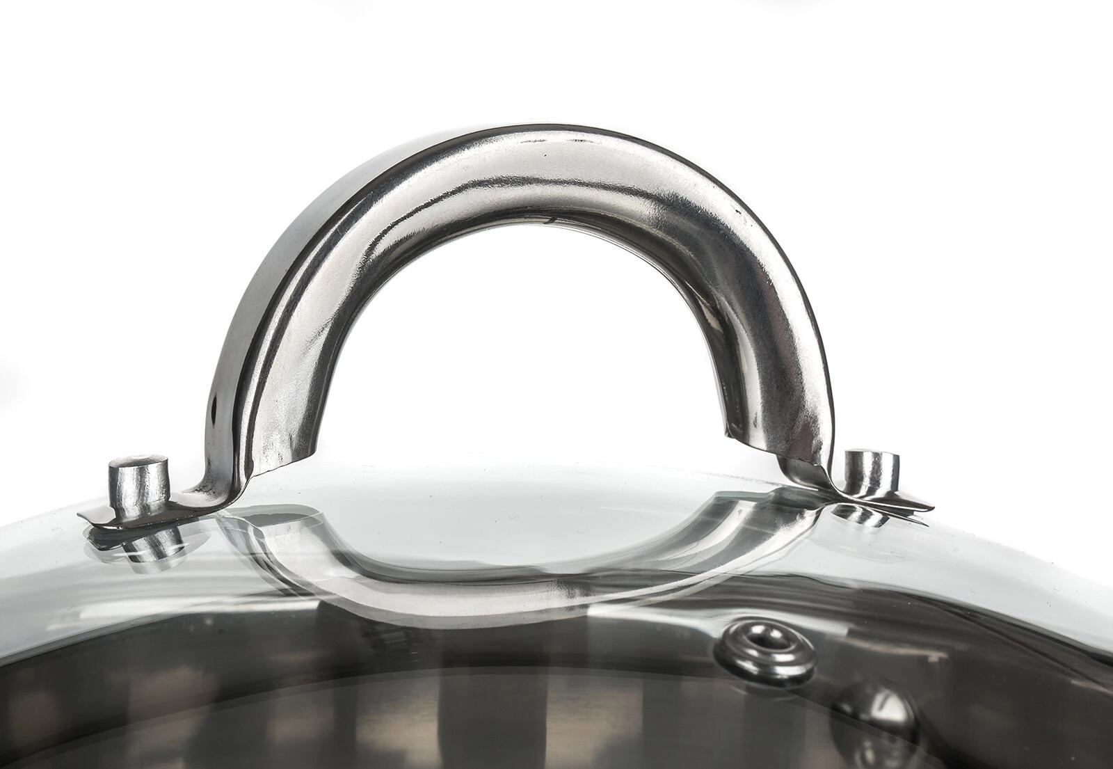 Polerowana powierzchnia ze stali nierdzewnej wewnątrz i na zewnątrz łatwo się czyści i nadaje się do zmywarki. Uchwyty są solidnie przykręcone dla pewnego chwytu.