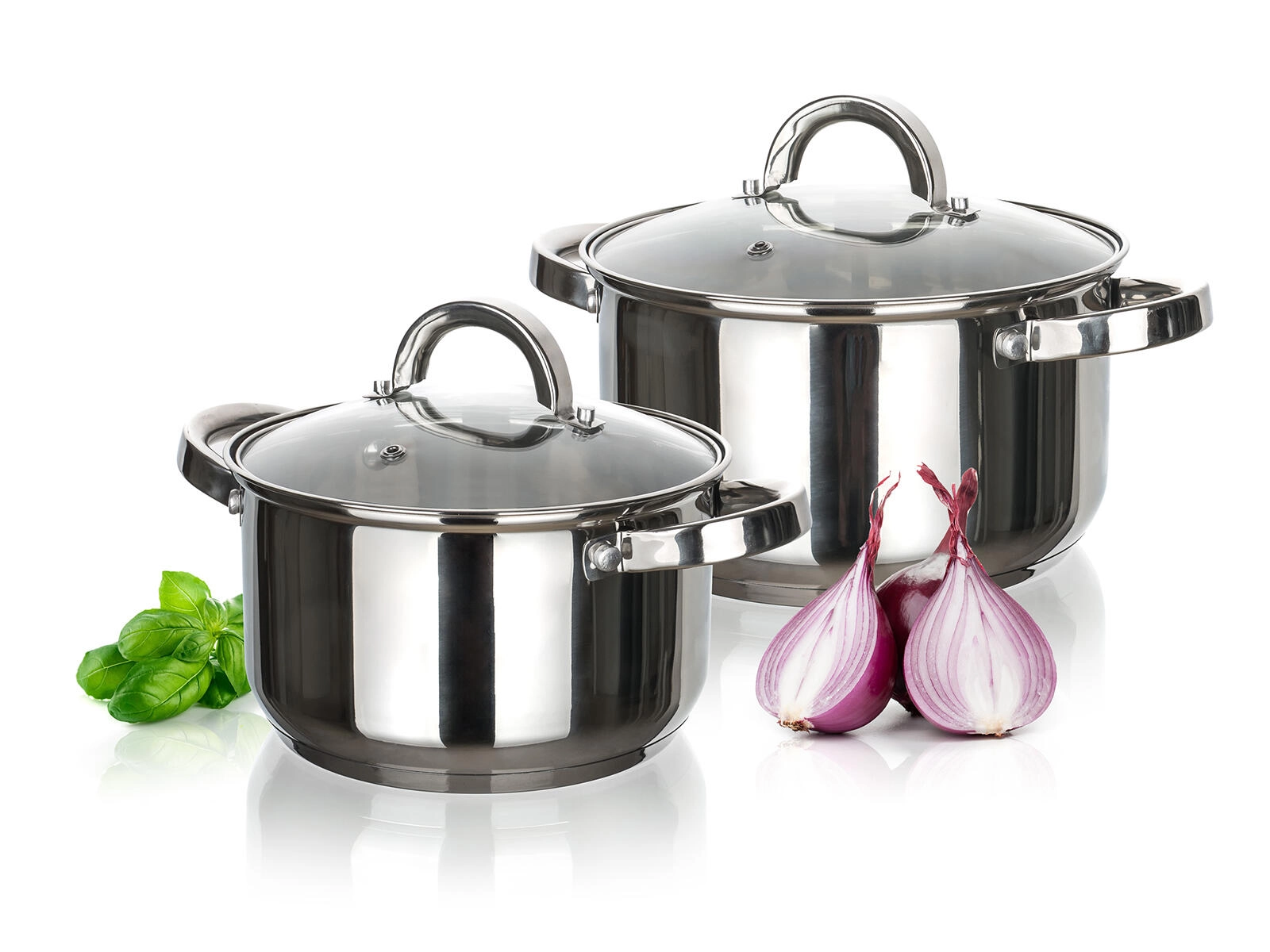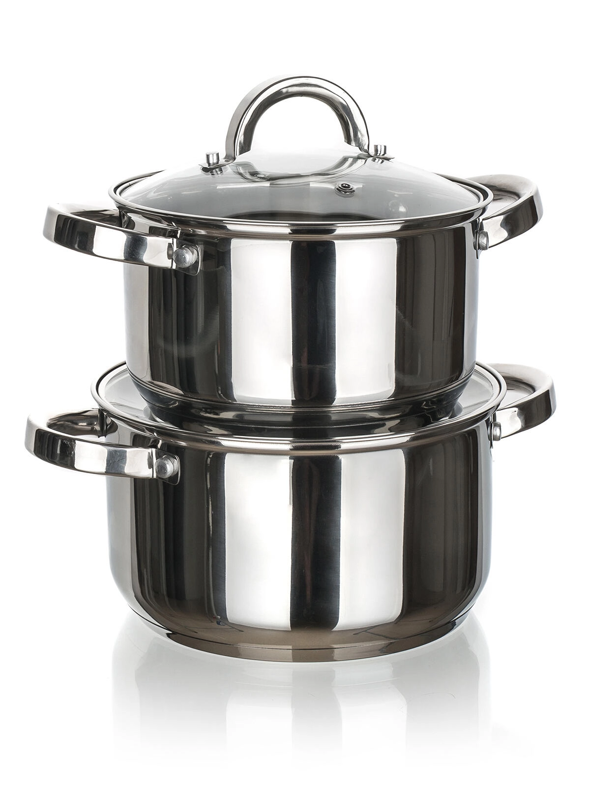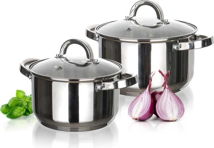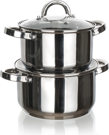 Polerowana stal nierdzewna łatwo się czyści, jest odporna na korozję i nadaje się do zmywarki. Garnki mają solidne uchwyty ze stali nierdzewnej oraz wielowarstwowe dno o grubości 2,8 mm dla bardziej równomiernego rozprowadzania ciepła. Zestaw jest kompatybilny z kuchenkami elektrycznymi, gazowymi, ceramicznymi i indukcyjnymi.