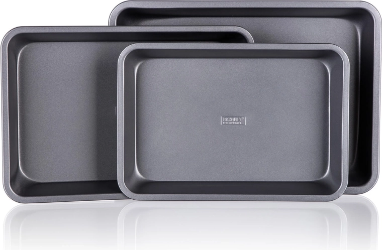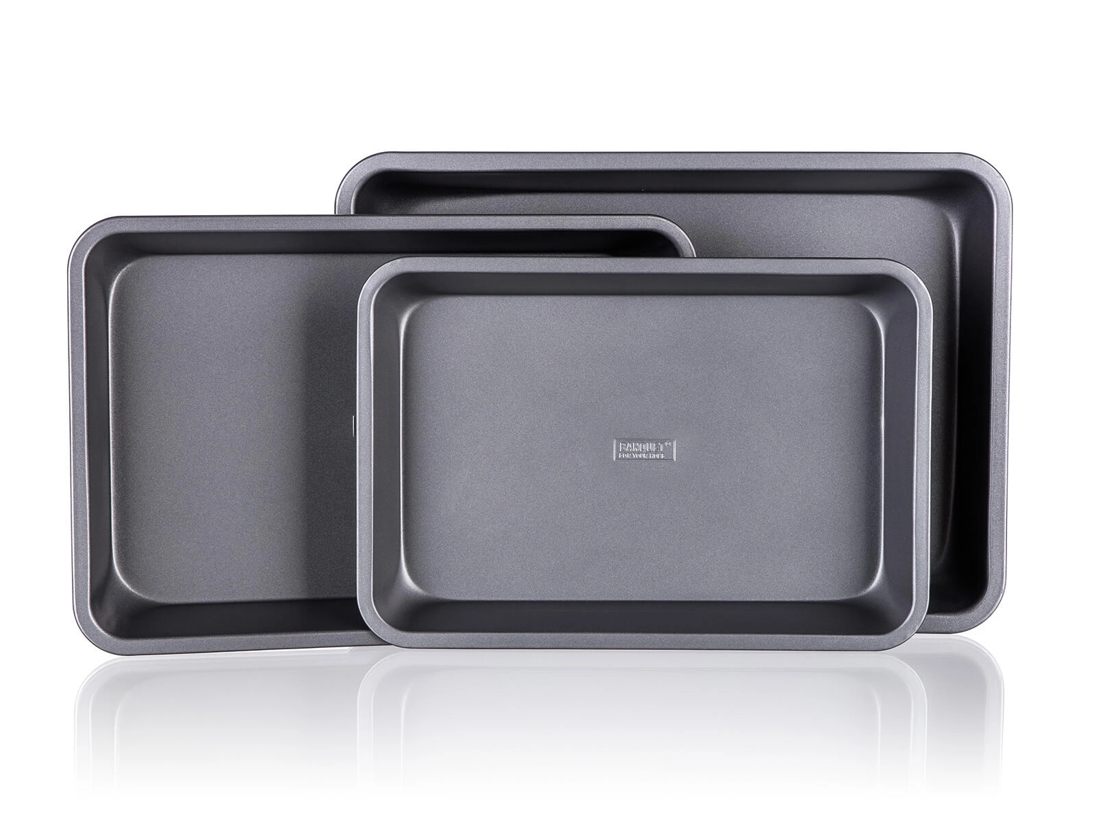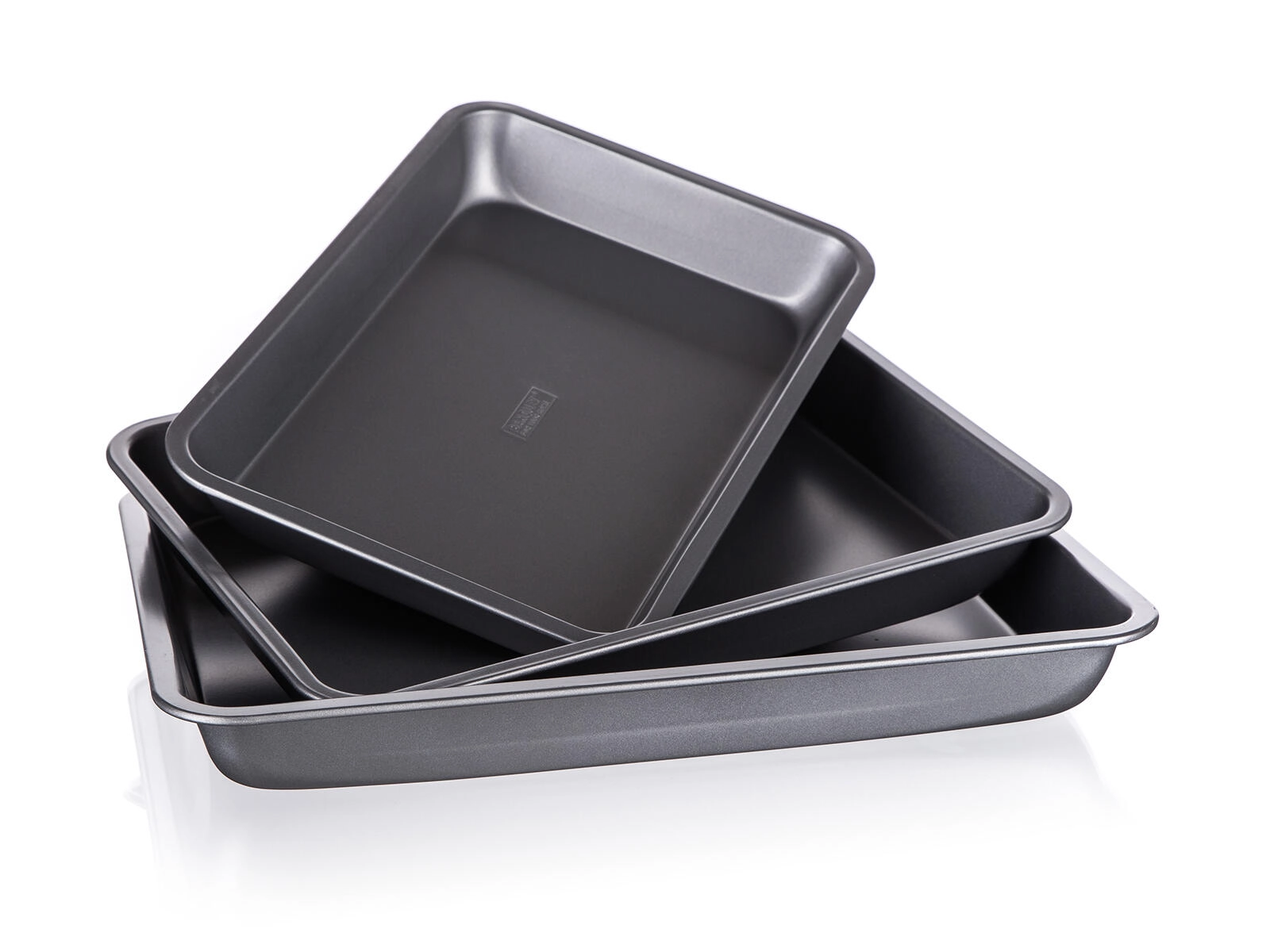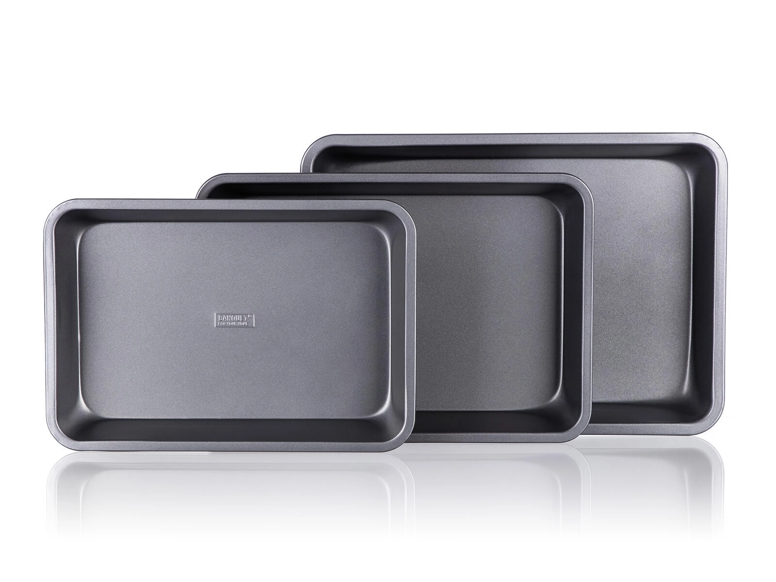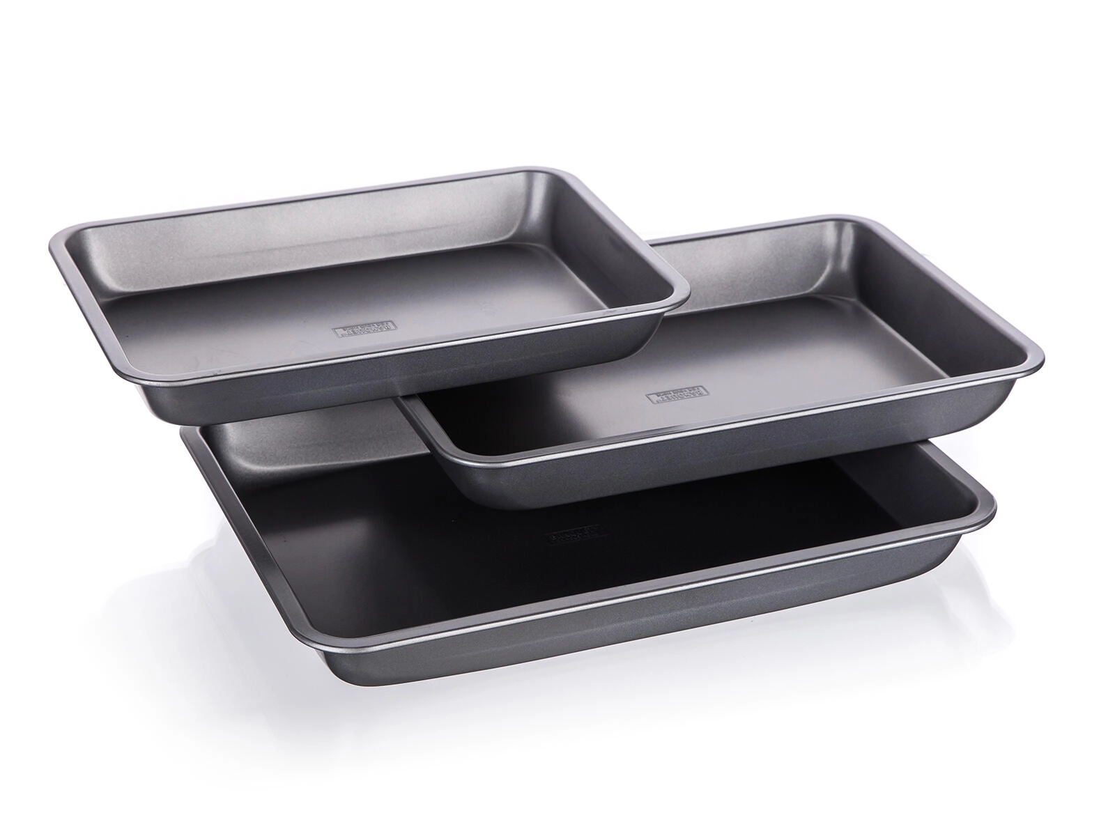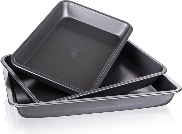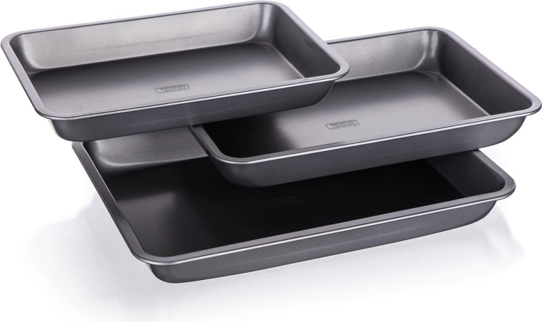 Zestaw zawiera małą, średnią i dużą blachę, które można wkładać jedna w drugą. Łatwo dobierzesz idealny rozmiar do ciasteczek, ciast i pieczonych warzyw.