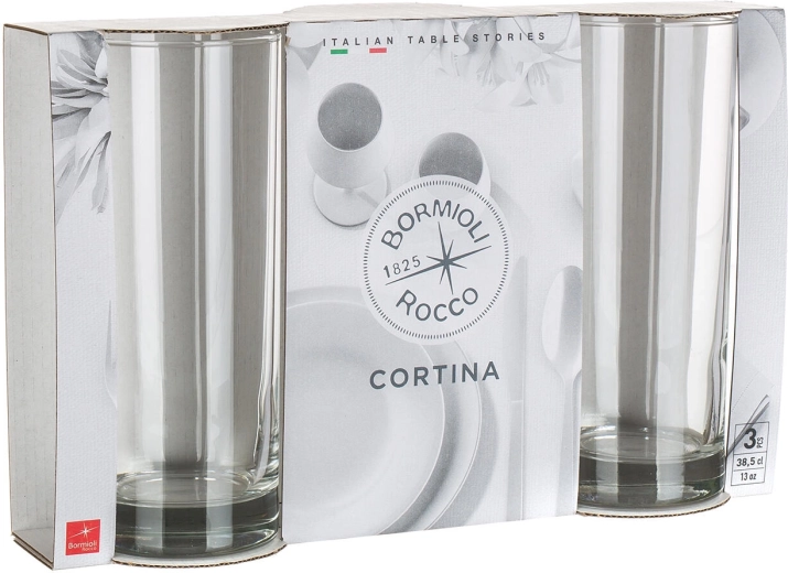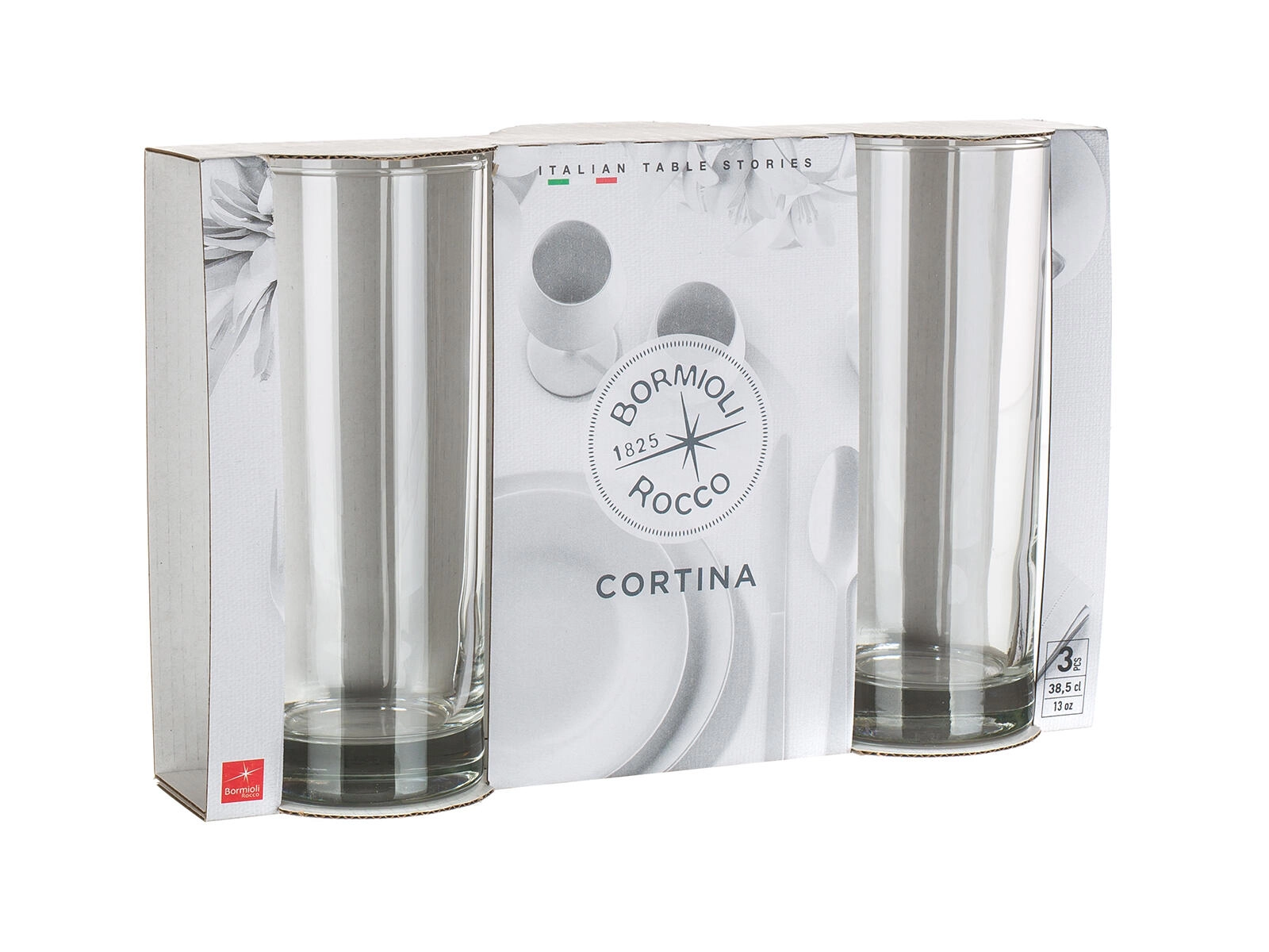 Eleganckie i wytrzymałe szklanki CORTINA 385 ml w praktycznym opakowaniu 3 szt. są idealne do serwowania wody, lemoniad i long drinków. Dzięki przejrzystemu szkłu, zrównoważonym proporcjom i uniwersalnemu kształtowi pasują do każdego domu i na odświętny stół.