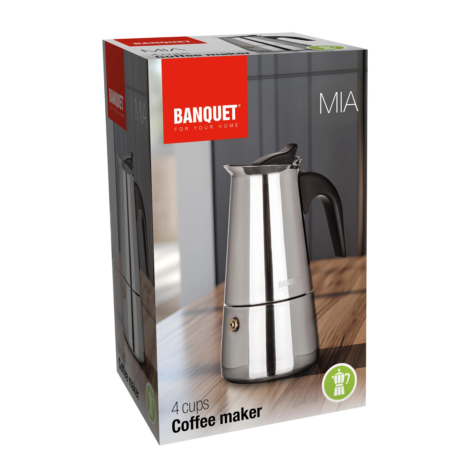 Ciesz się domowym espresso z tradycyjną stalową kawiarką MIA na 4 filiżanki (200 ml). Dzięki zaworowi bezpieczeństwa, ergonomicznej rączce i trwałej stali nierdzewnej przygotujesz mocną i aromatyczną kawę na gazie, kuchence elektrycznej, płycie ceramicznej oraz indukcji.