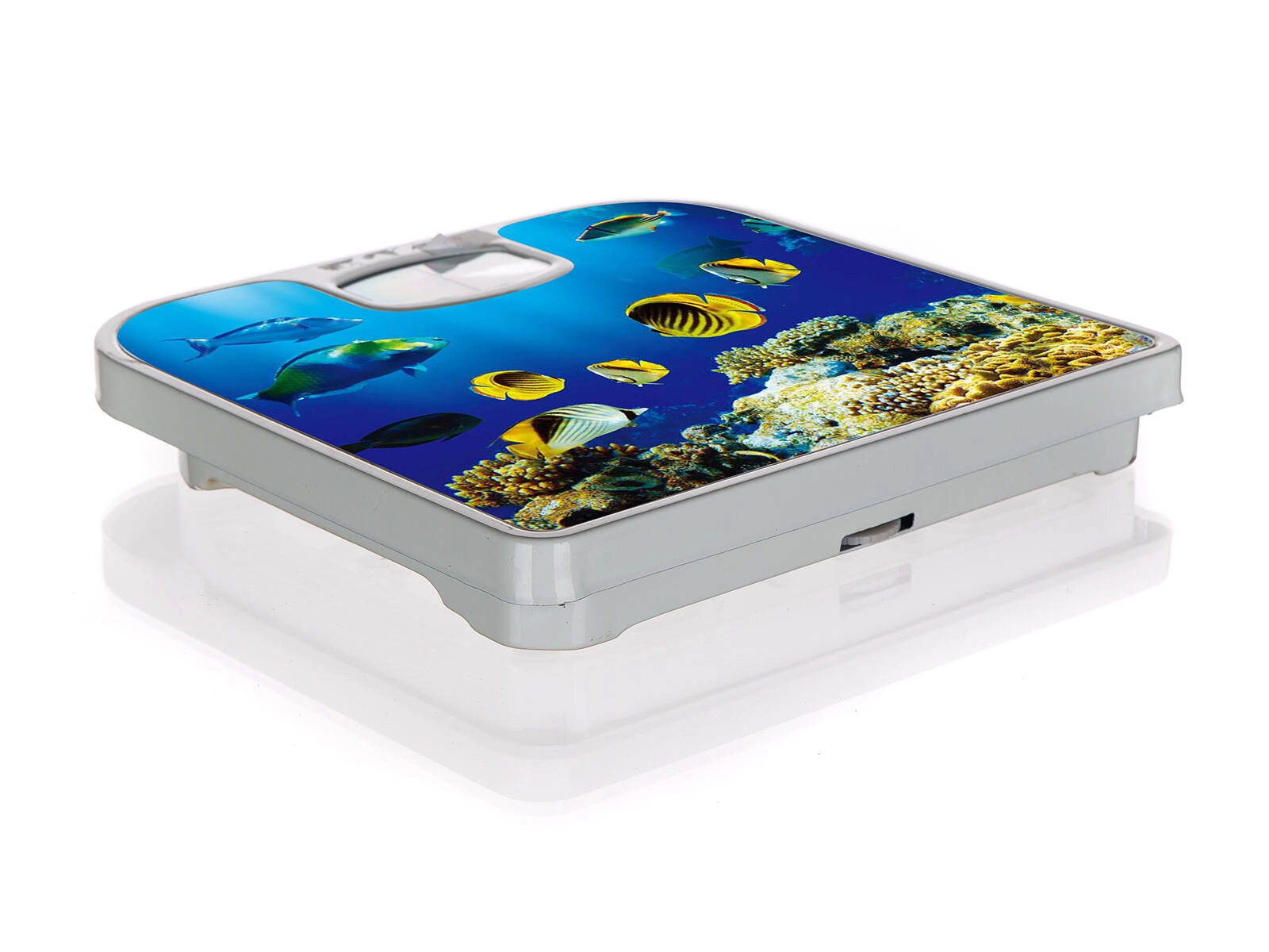 Kolorowy oceaniczny motyw z tropikalnymi rybami urozmaici Twoją łazienkę i nada ważeniu przyjemną atmosferę.