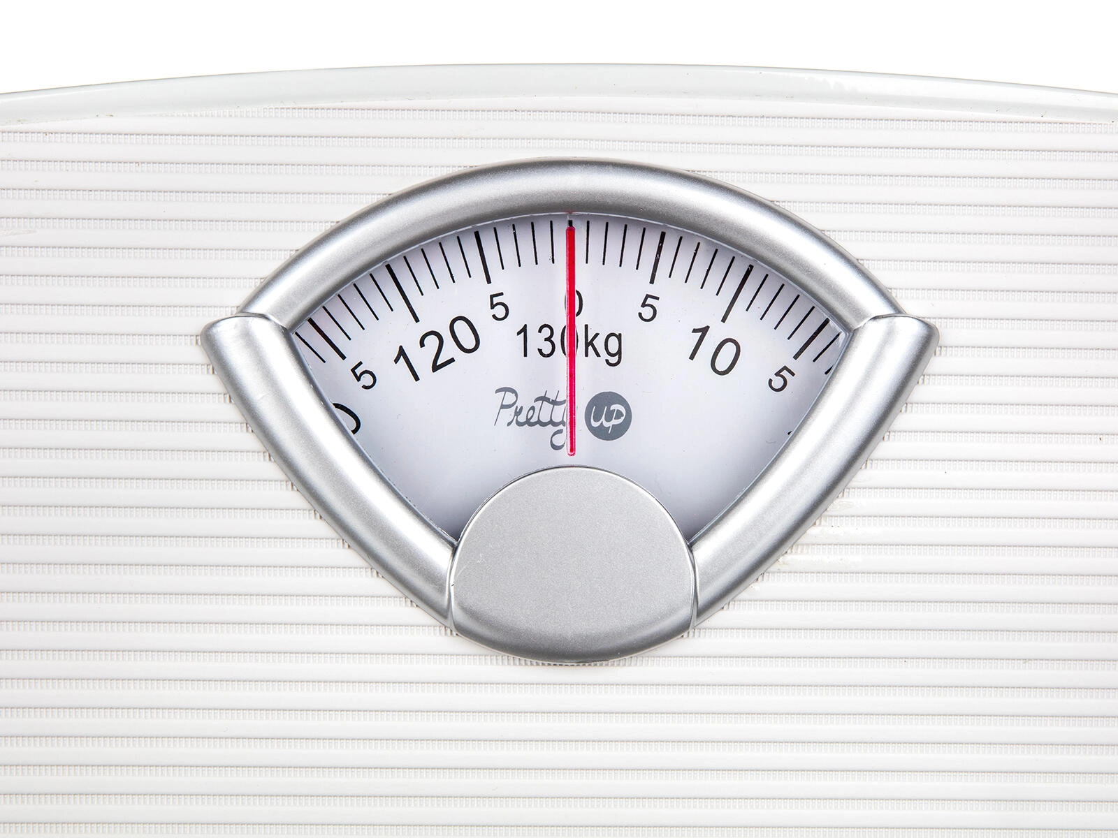 Duża skala z wyraźnymi oznaczeniami i czerwoną wskazówką umożliwia szybki i dokładny odczyt masy do 130 kg.