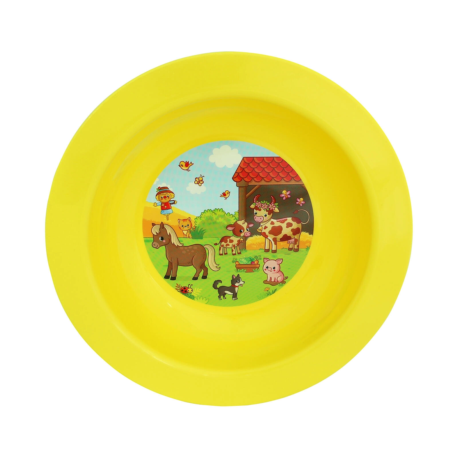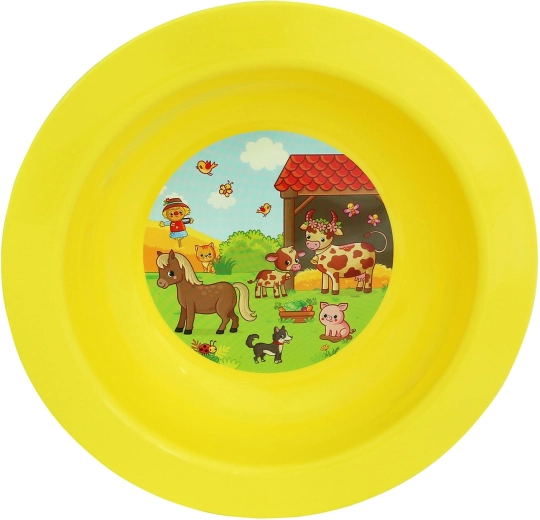 Wesoły dziecięcy głęboki talerz z motywem FARMA umili każdy posiłek. Lekki i wytrzymały plastik, praktyczna średnica 17,3 cm oraz kształt odpowiedni do zup i kaszek. Dostępny w mixie kolorów dla radosnego, bezproblemowego stołowania.