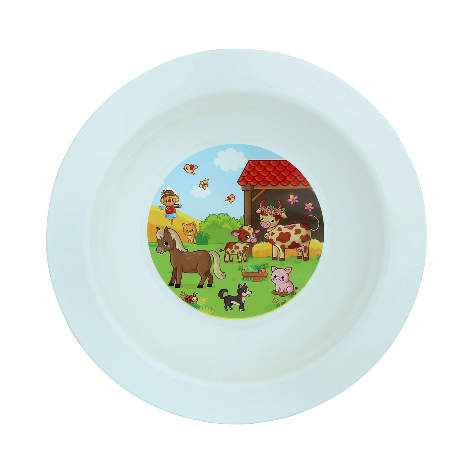 Głęboki dziecięcy talerz z zabawnym, farmerskim nadrukiem motywuje dzieci do samodzielnego jedzenia. Dzięki lekkiemu i solidnemu plastikowi dobrze leży w dłoni, wytrzymuje upadki i świetnie sprawdza się na co dzień w domu oraz w podróży.