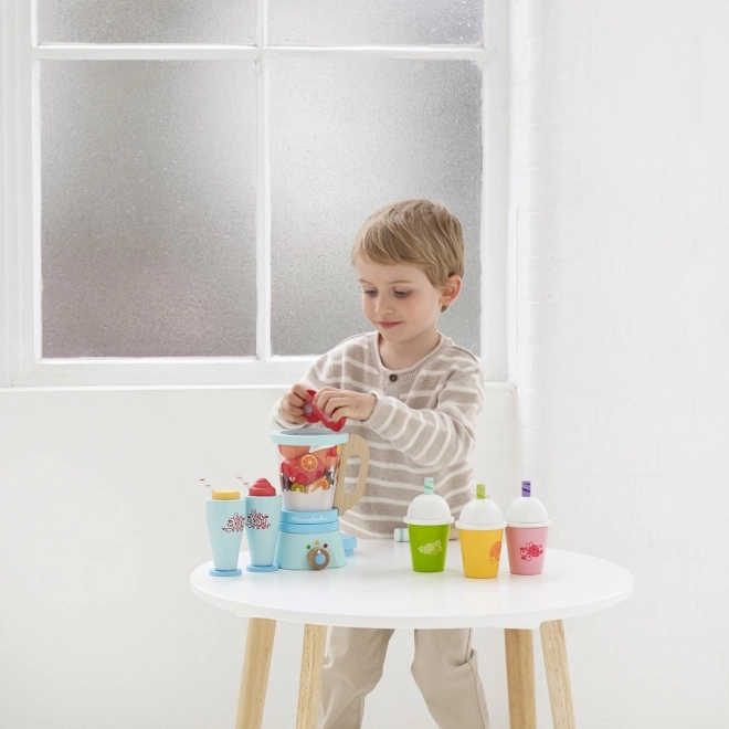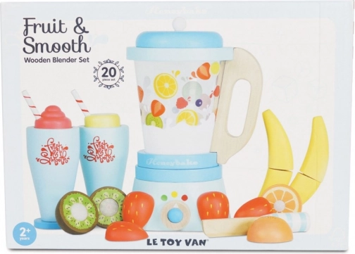 Zaserwuj dzieciom zdrową porcję zabawy z drewnianym mikserem do smoothie LE TOY VAN. Zestaw zawiera klasyczny mikser z odłączanym dzbankiem, 6 sztuk owoców do krojenia na rzep, drewniany nożyk oraz 2 szklanki ze słomkami. Wykonany z drewna z certyfikatem FSC, ręcznie domalowany nietoksycznymi farbami na bazie wody i nagrodzony za jakość oraz walory zabawowe.