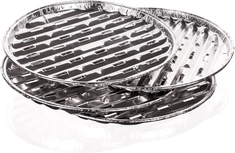 Ciesz się czystszym i zdrowszym grillowaniem z okrągłymi aluminiowymi tackami o średnicy 30 cm. Dzięki trwałemu aluminium o grubości 75 mikronów dobrze trzymają kształt, równomiernie rozprowadzają ciepło i zapobiegają przypalaniu soków. Idealne do mięsa, warzyw, ryb oraz delikatnych potraw, które mogłyby spadać przez ruszt.