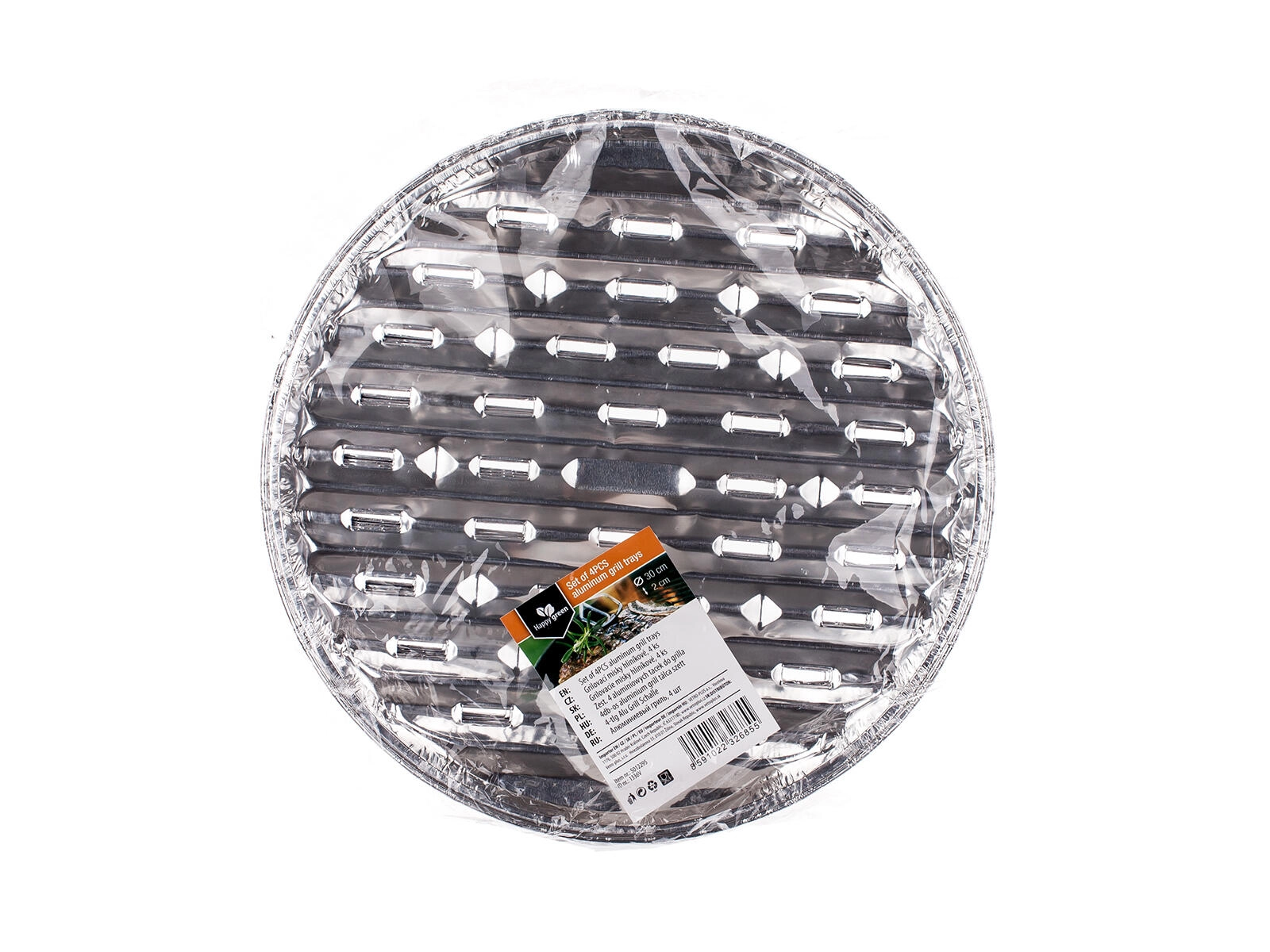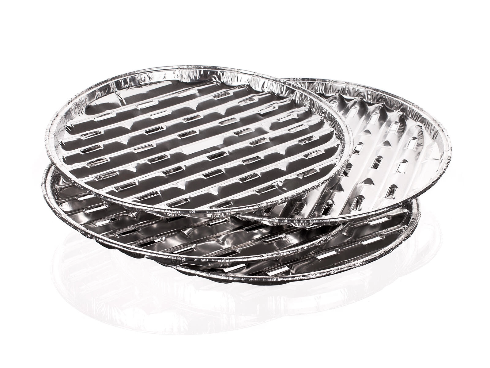 Praktyczne okrągłe aluminiowe tacki do grillowania o średnicy 30 cm ułatwią przygotowanie mięsa, warzyw i innych potraw na grillu. Lekkie, wytrzymałe i odporne na wysoką temperaturę tacki chronią ruszt, zapobiegają skapywaniu tłuszczu i pomagają w równomiernym wypieczeniu. W opakowaniu znajduje się 4 sztuki do wygodnego grillowania z rodziną i przyjaciółmi.