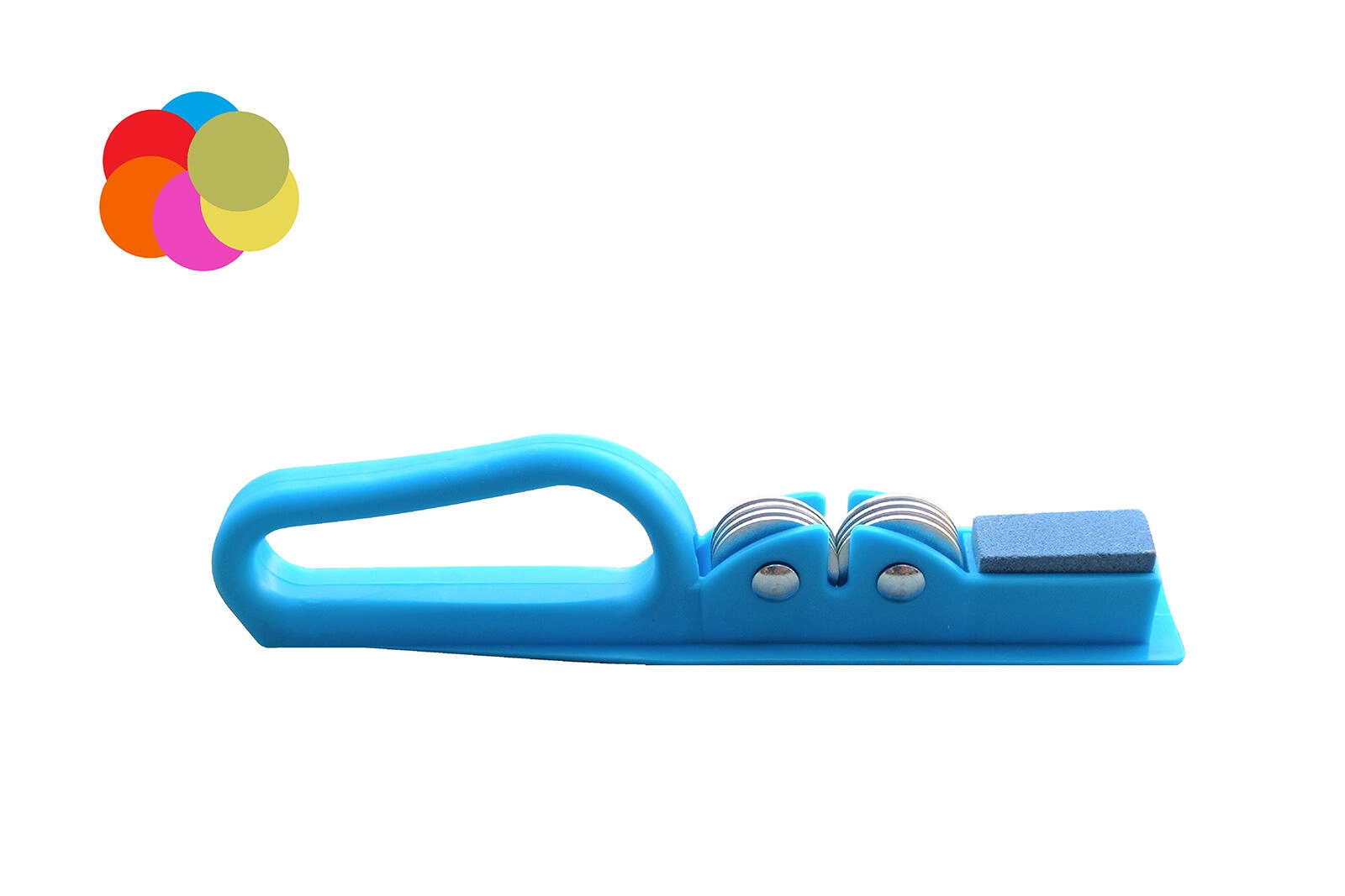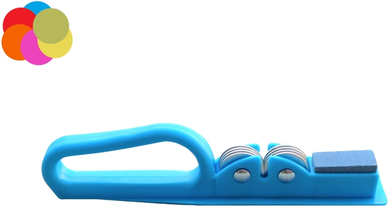 Praktyczna ostrzałka do noży do każdej kuchni, umożliwiająca szybkie i łatwe ostrzenie. Oferuje system 2w1 – tarczki ścierne i kamień ostrzący w jednym, solidny uchwyt dla bezpiecznego chwytu i zawieszenia oraz mix atrakcyjnych kolorów, by dopasować do kuchni.