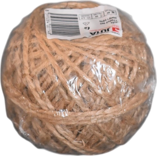 Naturalny sznurek jutowy w brązowym kolorze o grubszej strukturze do uniwersalnego zastosowania w domu i ogrodzie. Oferuje średnicę 3,5 mm, długość 60 m oraz wytrzymałość do 32 kg. Jest biodegradowalny, idealny do pakowania paczek i prezentów, dekoracji, aranżacji oraz prac ogrodowych.