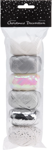 Elegancka wstążka do wiązania o długości 8 m w połączeniu bieli i srebra nada Twoim prezentom i dekoracjom luksusowy wygląd. Idealna do pakowania prezentów, tworzenia kokard oraz kreatywnego zdobienia, korzystne opakowanie 6 szt. do użytku domowego i profesjonalnego.