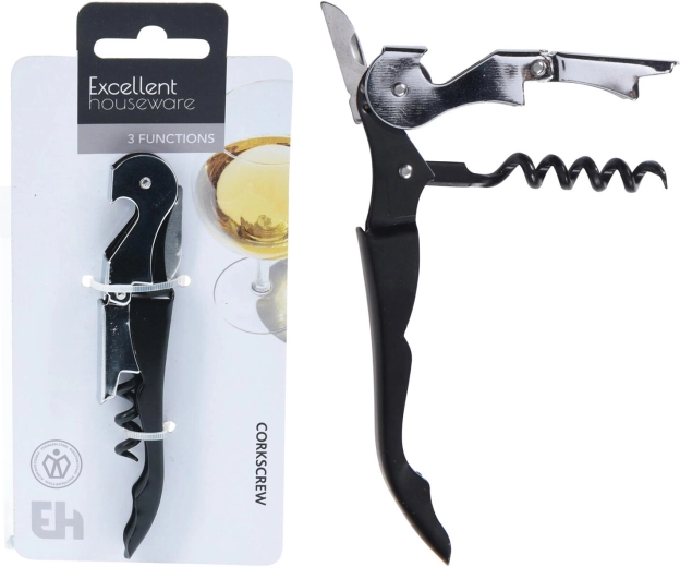 • 3 w 1 – korkociąg, otwieracz do kapsli i obcinacz folii.