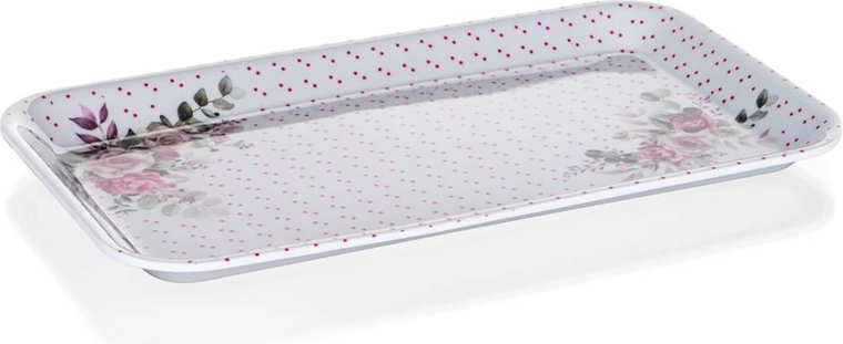 Ta melaminowa taca o wymiarach 29,5 × 16,5 cm w designie ROSE doskonale sprawdzi się podczas serwowania śniadań, deserów, kawy czy drobnego poczęstunku. Lekka konstrukcja i wygodny kształt zapewniają komfortowe przenoszenie nawet w pełni załadowanej tacy.