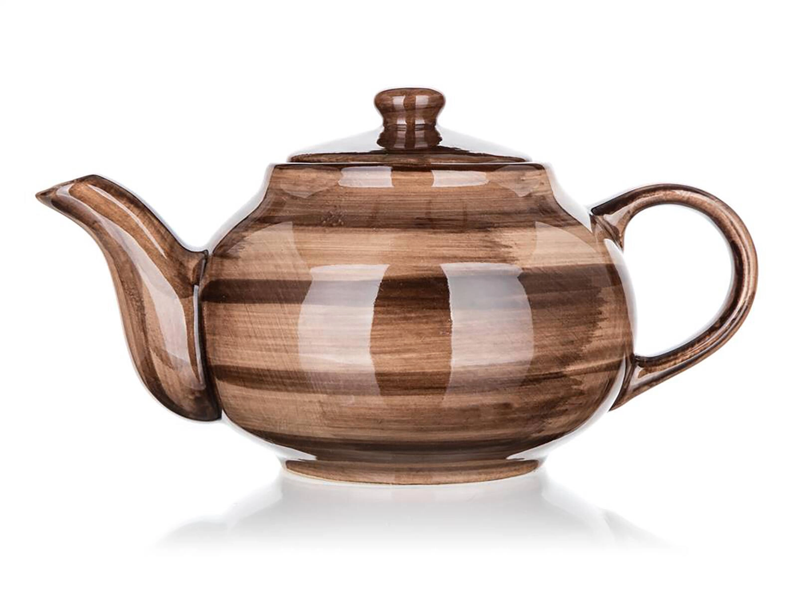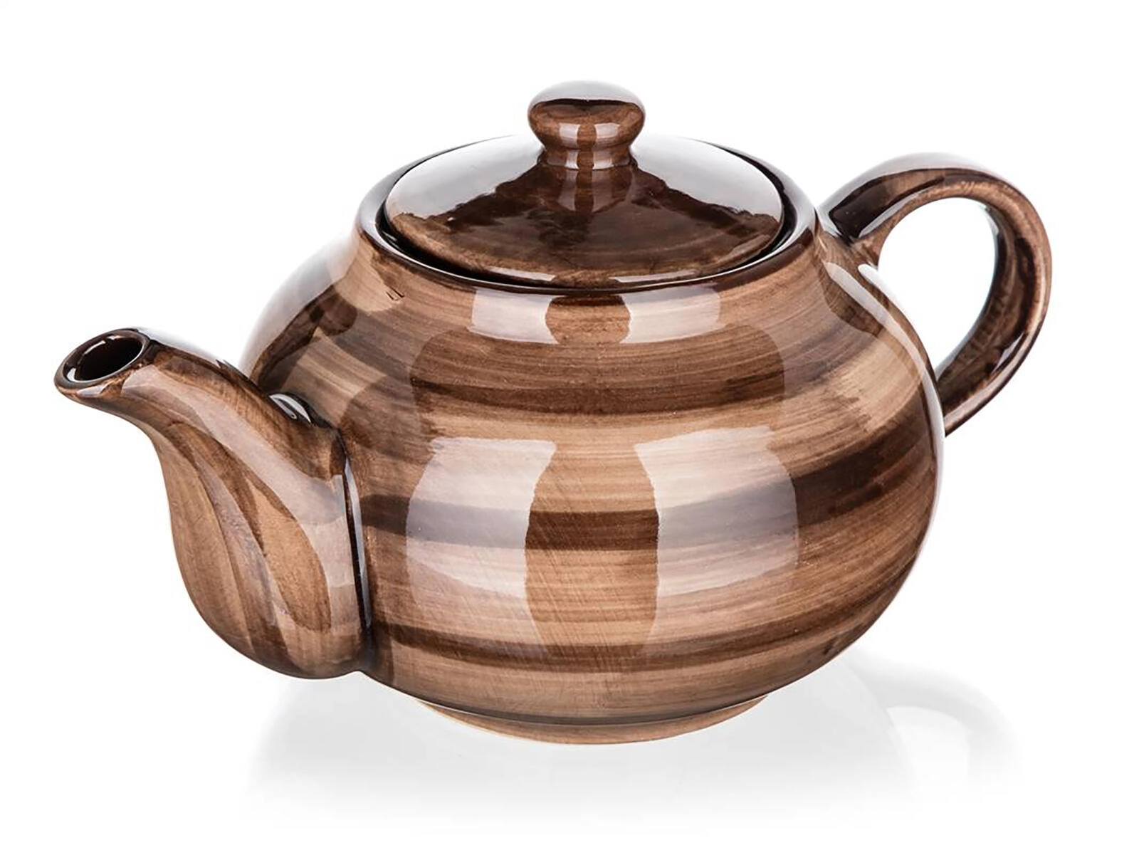 Elegancki ceramiczny czajnik PALAS o pojemności 0,9 l jest idealny do codziennego serwowania herbaty i naparów ziołowych. Dzięki wytrzymałej ceramice, praktycznej pokrywce i wygodnemu uchu świetnie się nim manewruje, a brązowa glazura nadaje nakryciu stołu ponadczasowy styl. Odpowiedni do kuchenki mikrofalowej i zmywarki.