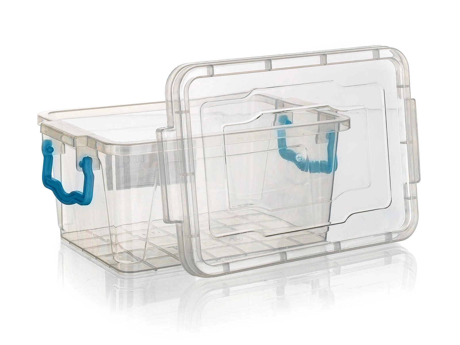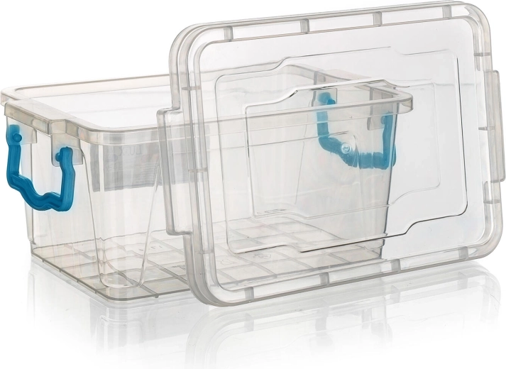 - Przezroczysty pojemnik, turkusowe uchwyty
