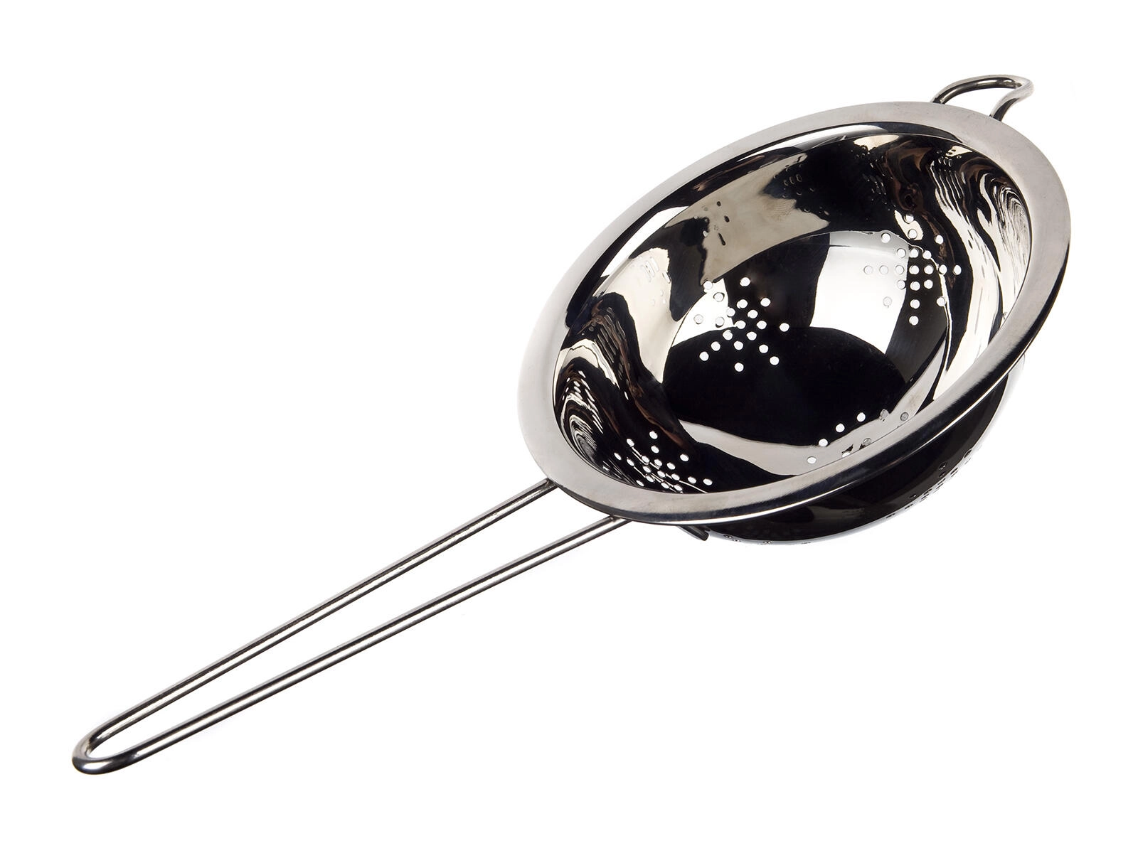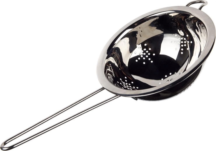 Przemyślany ergonomiczny uchwyt z otworem umożliwia wygodny chwyt i zawieszenie na kuchennej listwie. Delikatna perforacja skutecznie odprowadza wodę, zapewniając szybkie i równomierne odcedzanie bez zbędnego zatrzymywania płynów.