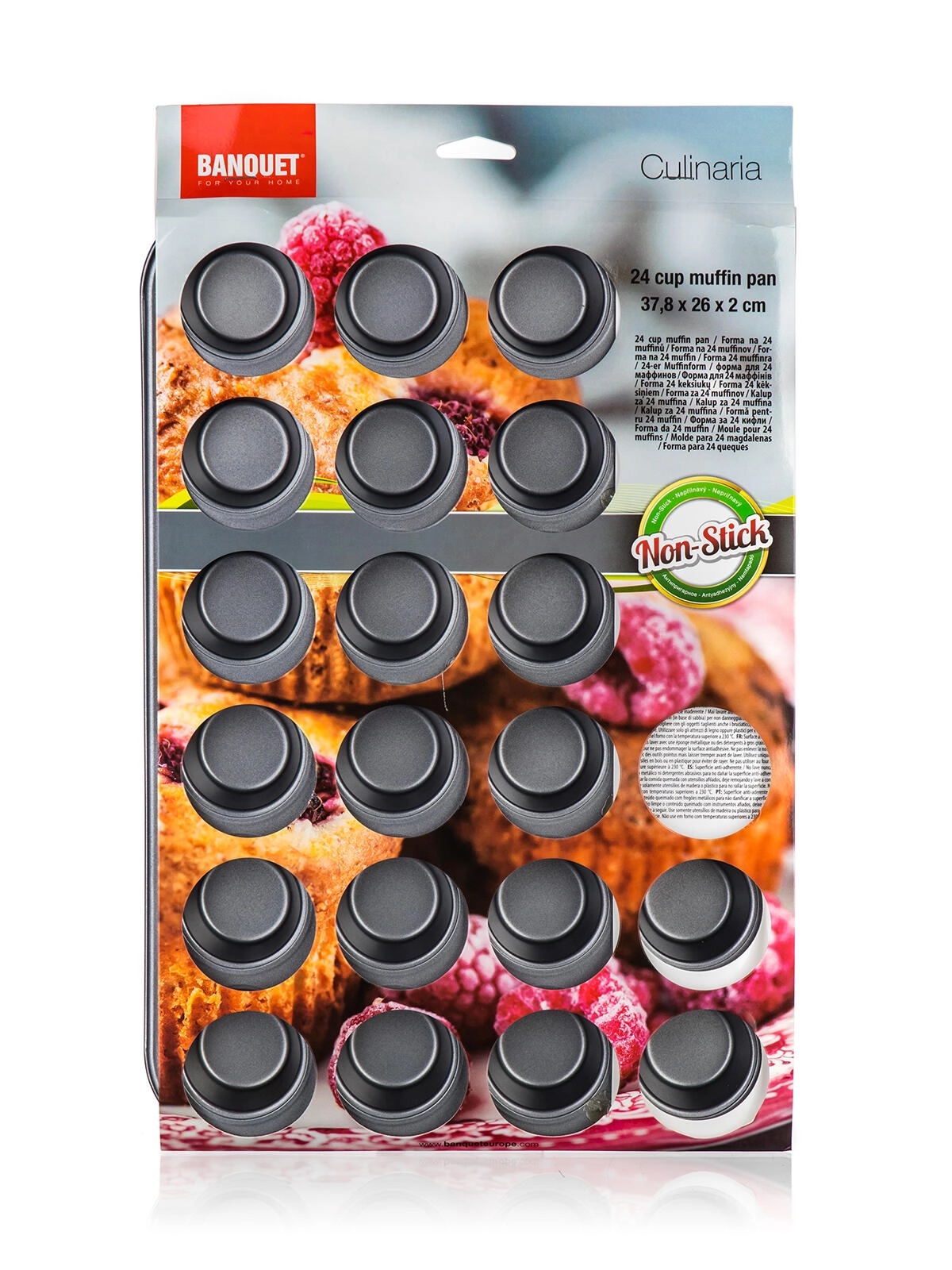 Odkryj niezawodną formę do pieczenia, z którą przygotujesz nawet 24 sztuki jednocześnie – idealną do mini pączków, muffinek czy tarteletek. Korpus z stali węglowej gwarantuje stabilność i równomierny rozkład ciepła, a nieprzywierająca powłoka XYNFLON (PTFE) ułatwia wyjmowanie i czyszczenie.
