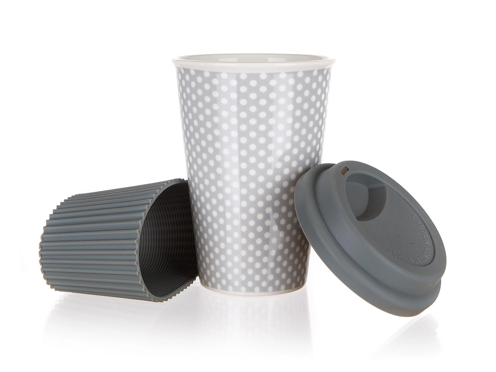 Kubek został zaprojektowany do codziennego użytku – łatwo go utrzymać w czystości, można myć w zmywarce i podgrzewać w kuchence mikrofalowej. Minimalistyczny szary design w kropki pasuje do biura, samochodu i domu, podkreślając Twój styl.