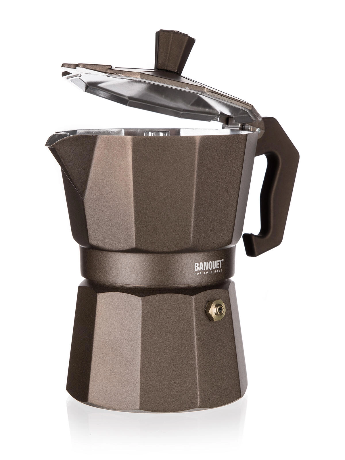 Delektuj się rzetelnym stylem espresso z kawiarką BANQUET CAMPI. Klasyczna aluminiowa konstrukcja szybko przewodzi ciepło, a po kilku użyciach zyskuje delikatną patynę dla autentycznego smaku kawy. Dzięki zaworowi bezpieczeństwa i wygodnemu uchwytowi przygotowanie kawy jest proste i bezpieczne.