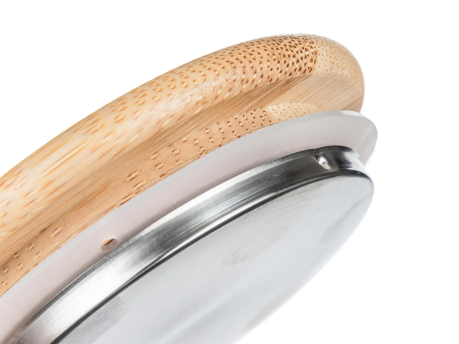 Pokrywka z bambusu ze stalową nakładką i silikonową uszczelką jest odporna na wilgoć i zapachy, a także pomaga utrzymać aromat napoju wewnątrz dzbanka.