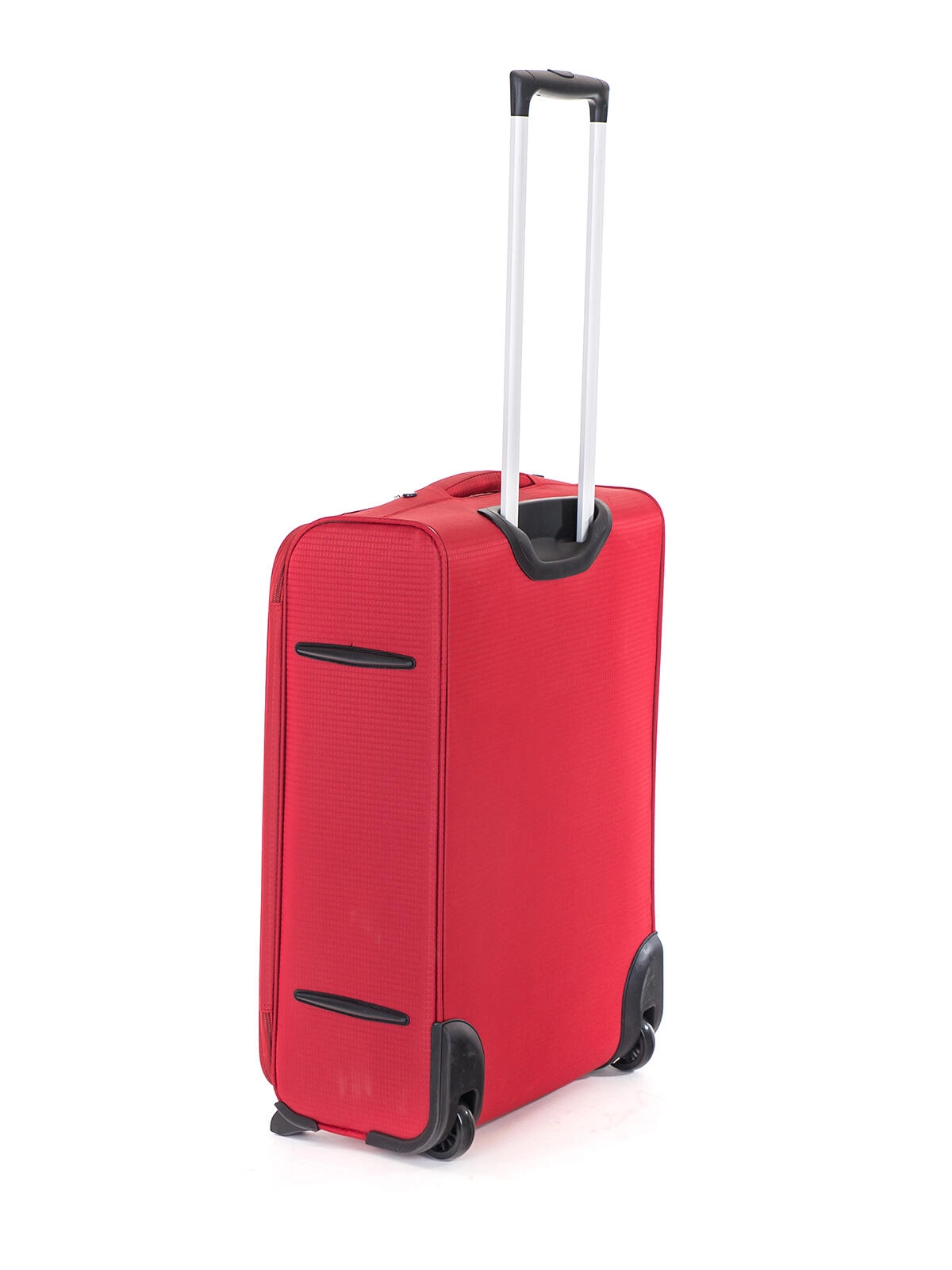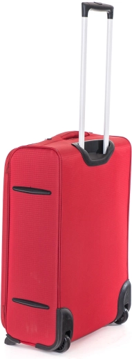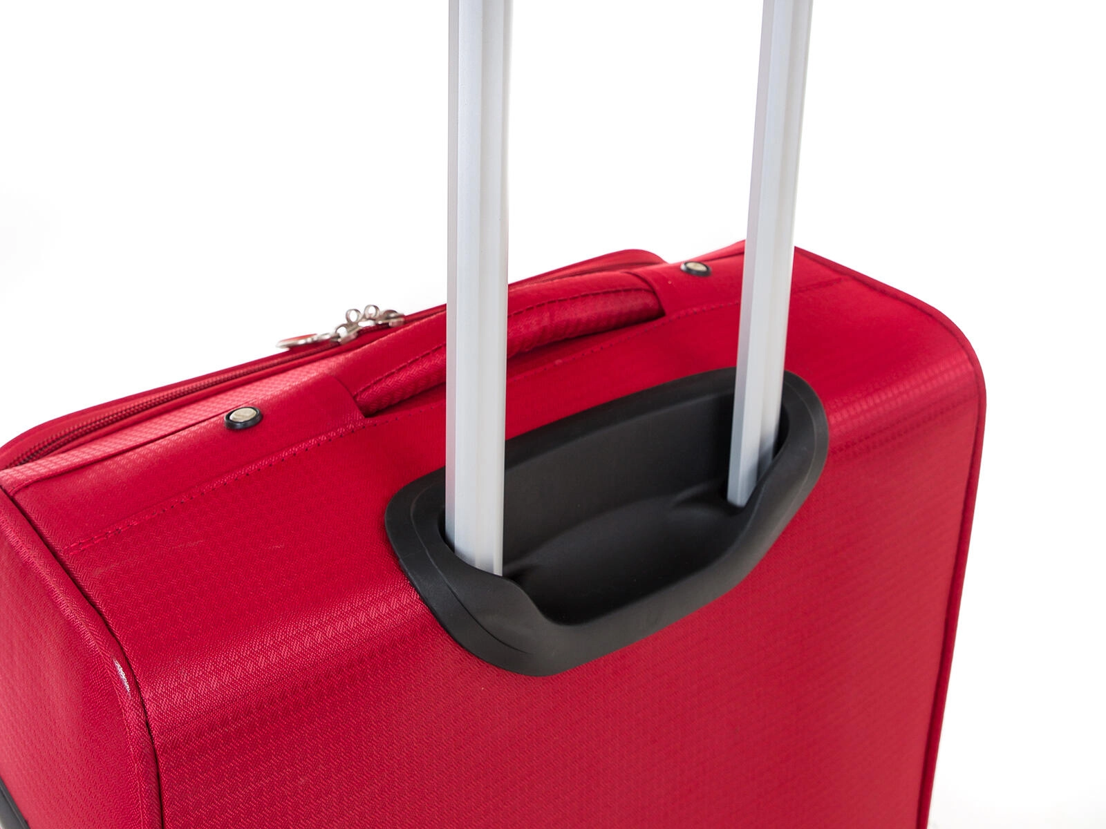 Szukasz praktycznego i lekkiego bagażu na wakacje i wyjazdy służbowe? Ten czerwony tekstylny kuferek w rozmiarze M łączy niską wagę, przemyślany podział i łatwą obsługę. Dwa solidne kółka narożne, górny i boczny uchwyt oraz wysuwana rączka z blokadą zapewniają wygodne przemieszczanie na lotnisku i w mieście.