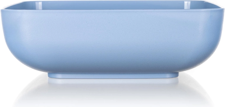 Ta jasnoniebieska miska CULINARIA o pojemności 1,8 l łączy praktyczność z eleganckim, minimalistycznym designem. Kwadratowy kształt z zaokrąglonymi rogami oszczędza miejsce podczas przechowywania i serwowania, a stabilna podstawa utrzymuje miskę pewnie na blacie roboczym.