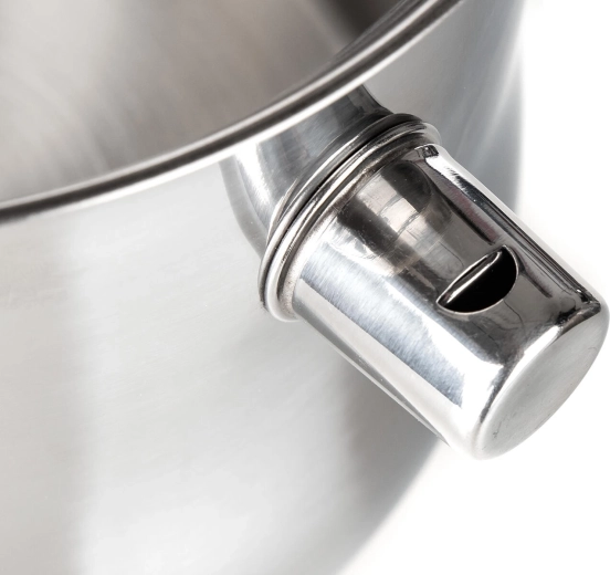 Gdy woda w podwójnej ściance osiągnie punkt wrzenia, gwizdek da sygnał – masz kontrolę nad procesem bez konieczności stałego nadzoru.