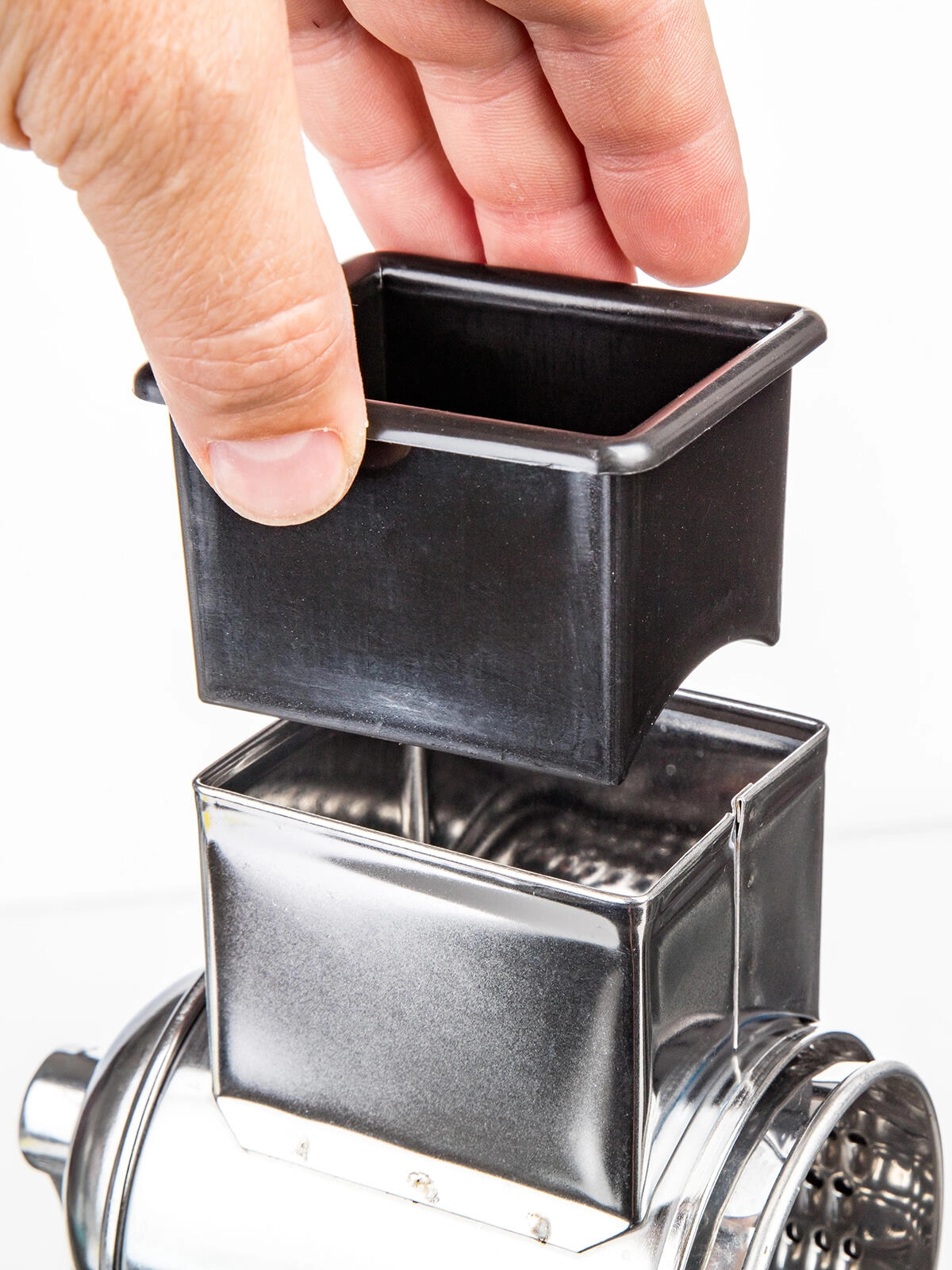 Wysokiej jakości bęben ze stali nierdzewnej zapewnia efektywne rozdrabnianie bułki tartej, orzechów oraz twardych serów i długą żywotność.