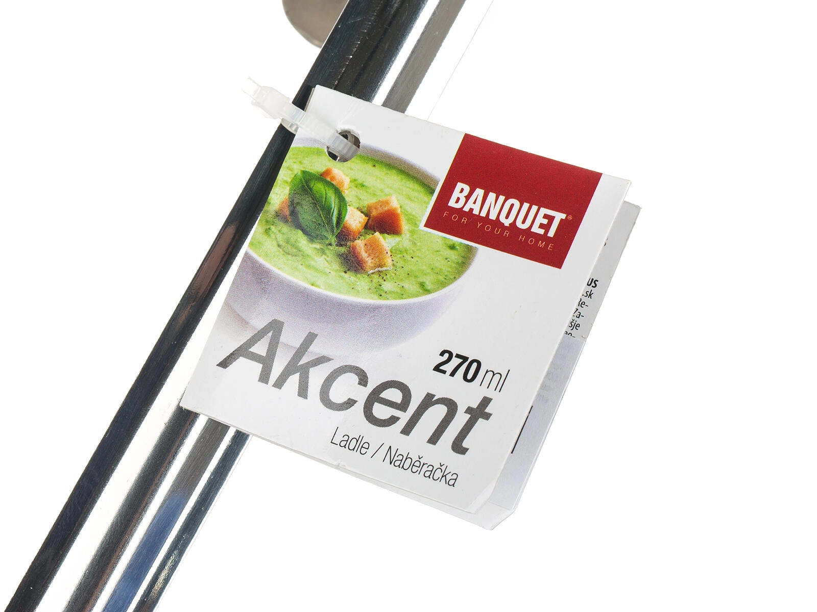 Praktyczna łyżka wazowa AKCENT o pojemności 270 ml i średnicy 11 cm jest idealna do serwowania zup i sosów. Ma haczykiem do wygodnego zawieszenia na relingu lub garnku, a dzięki wysokiej jakości stali nierdzewnej jest odpowiednia do mycia w zmywarce.