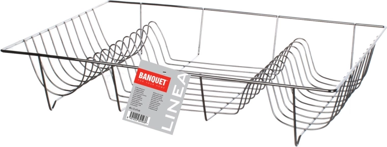 Zadbaj o czysty i uporządkowany blat kuchenny. Ociekacz BANQUET z chromowanej stali oferuje stabilną powierzchnię odkładczą dla talerzy, misek, szklanek i sztućców. Dzięki kompaktowym wymiarom 48 × 33 × 9 cm wygodnie mieści się na większości zlewozmywaków i blatów kuchennych.