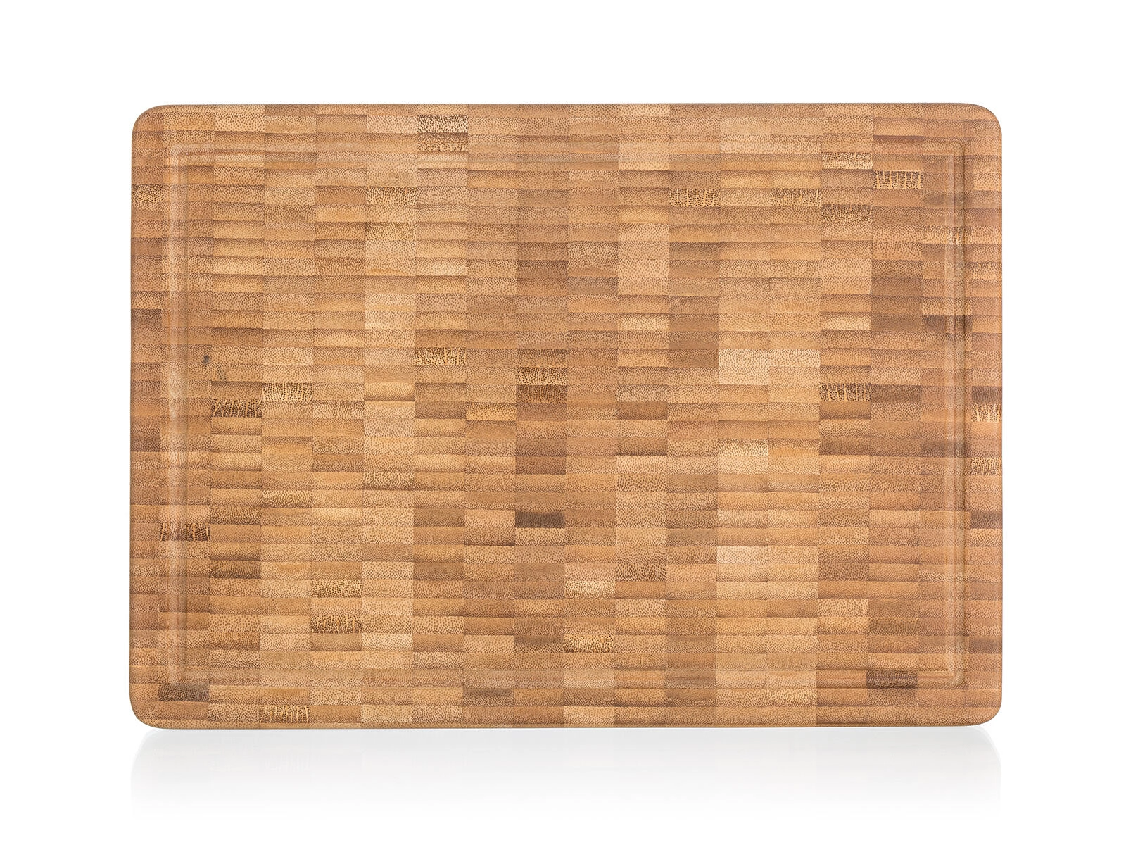 Praktyczna bambusowa deska do krojenia BRILLANTE o wymiarach 35 × 25 × 3 cm oferuje solidną i wytrzymałą powierzchnię roboczą do codziennego krojenia. Dzięki naturalnej mozaikowej strukturze pięknie dopełni Twoją kuchnię i wyróżnia się długą żywotnością oraz łatwą pielęgnacją.