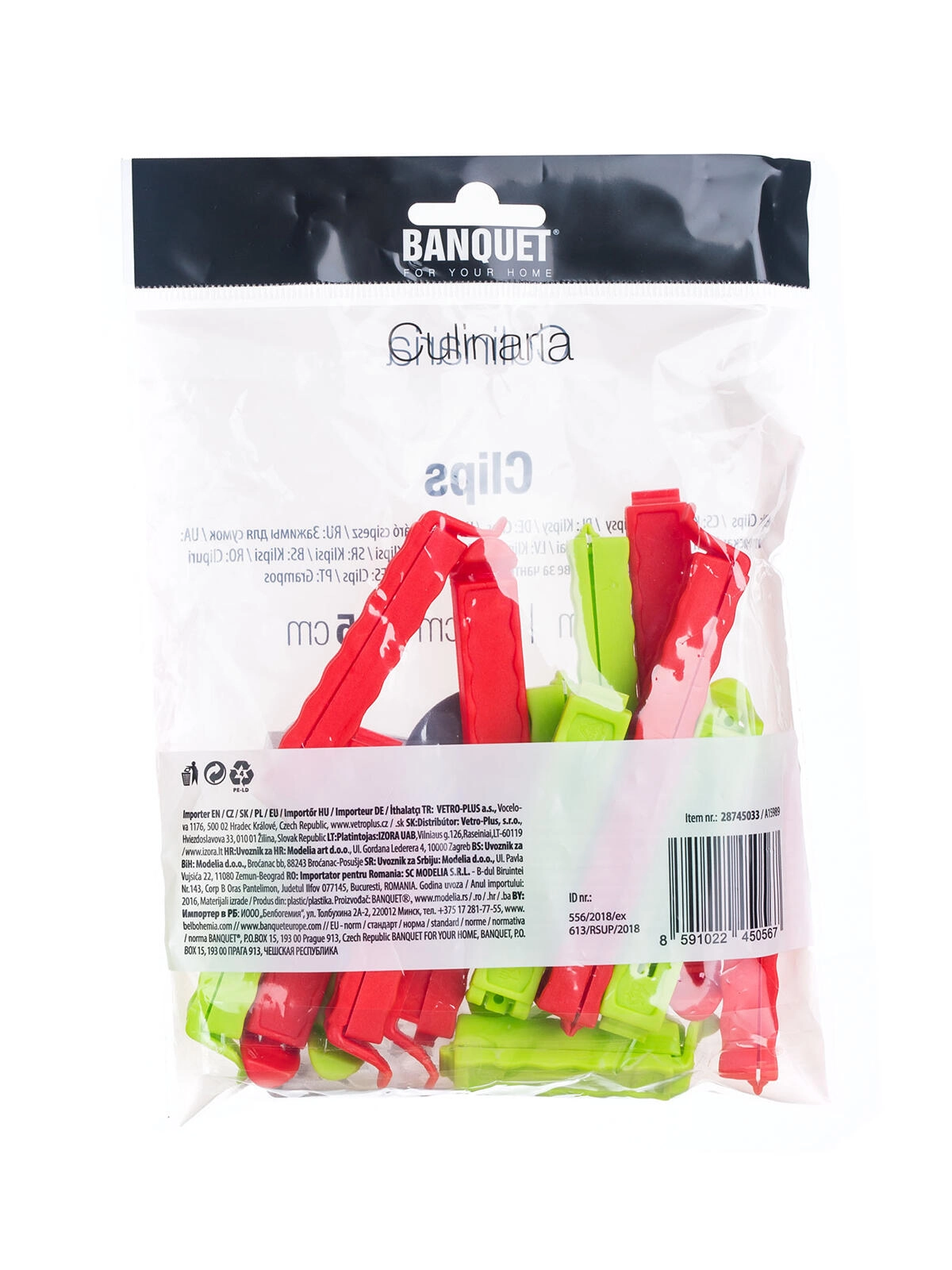 Praktyczny zestaw klipsów do torebek CULINARIA z 15 sztukami w różnych rozmiarach niezawodnie zamyka żywność i dłużej utrzymuje ją świeżą. Dzięki wytrzymałemu tworzywu i prostemu zatrzaskowi klipsy są idealne do codziennego użytku w kuchni. Szybkie zamykanie, ochrona przed kurzem i wilgocią oraz mix kolorów dla łatwego rozróżniania ułatwiają organizację żywności i przekąsek.