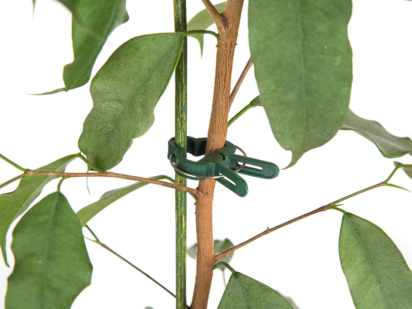 Sprężynowy klips bezpiecznie przytrzymuje łodygi przy podporze bez uszkodzeń i łamania. Idealny dla wrażliwych młodych roślin i silniejszych pędów.
