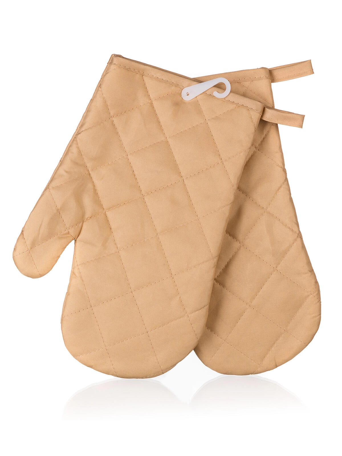 Praktyczna pętelka pozwala łatwo zawiesić rękawice i mieć je zawsze pod ręką. Wytrzymały poliester jest łatwy w utrzymaniu i na długo zachowuje kształt oraz kolor. Zestaw dostarczany jest jako para w kilku wariantach kolorystycznych, więc łatwo dopasujesz akcesoria kuchenne.