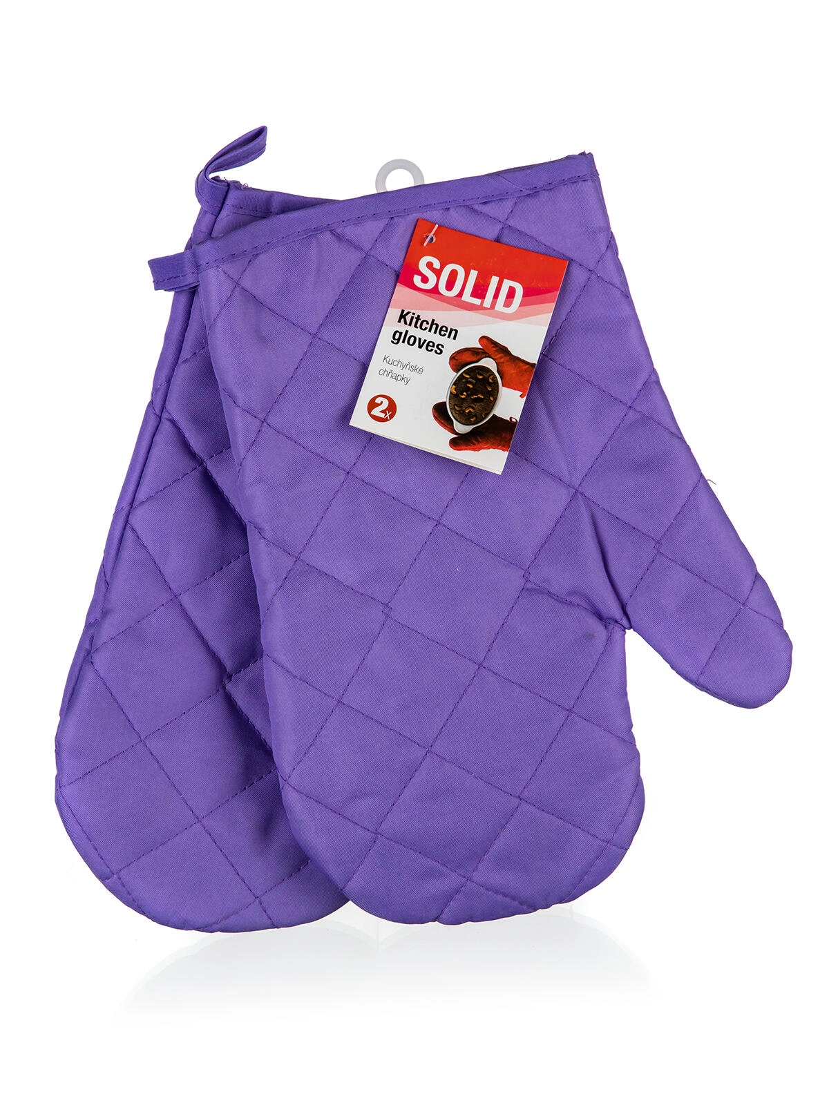 Praktyczny zestaw kuchennych rękawic SOLID w rozmiarze 27 × 17 cm niezawodnie chroni dłonie podczas manipulowania gorącymi naczyniami. Wytrzymałe wykonanie z poliestru, wygodny krój oraz mocne, pikowane wypełnienie zapewniają doskonałą izolację termiczną. Każda rękawica ma pętelkę do zawieszenia dla łatwego przechowywania. Dostarczane jako para (2 szt.) w miksie kolorów.