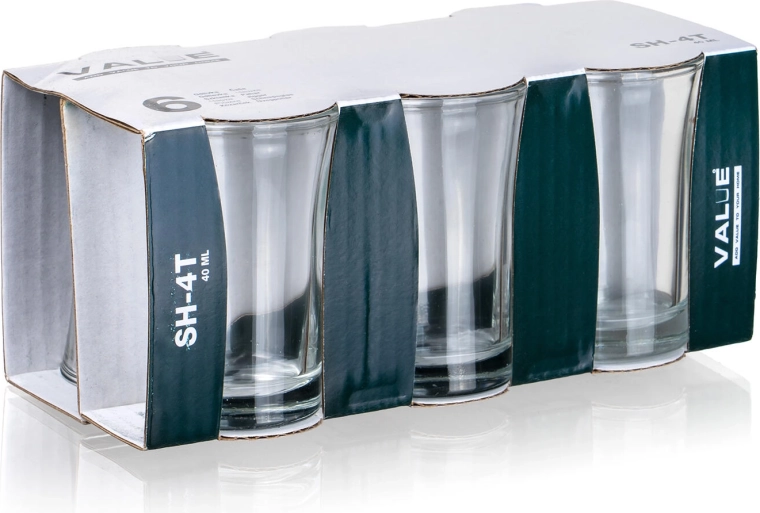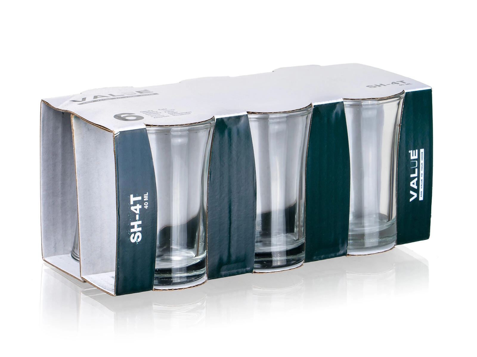 Zestaw kieliszków 40 ml VALUE oferuje eleganckie i praktyczne rozwiązanie do serwowania destylatów i likierów. Przezroczyste szkło podkreśla barwę napoju, wytrzymałe wykonanie zapewnia długą żywotność, a możliwość mycia w zmywarce ułatwia pielęgnację. Idealne do użytku domowego i profesjonalnej gastronomii.