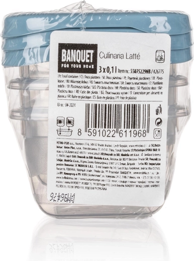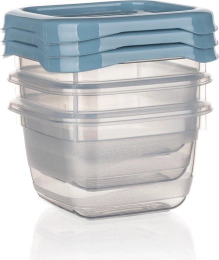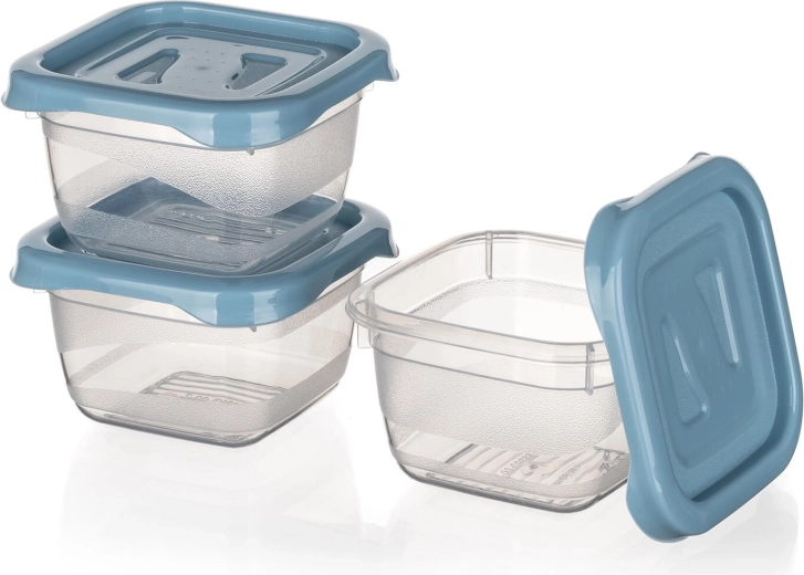 Kompaktowy zestaw trzech kwadratowych pojemników CULINARIA o pojemności 0,1 l jest idealny do przechowywania małych porcji, dressingów i przekąsek. Praktyczne wieczka w odcieniu nordic blue ściśle przylegają, pojemniki są odpowiednie do zmywarki, kuchenki mikrofalowej i zamrażarki, a dzięki przezroczystemu plastiku zawsze widać zawartość.