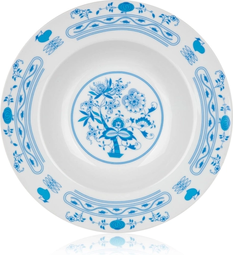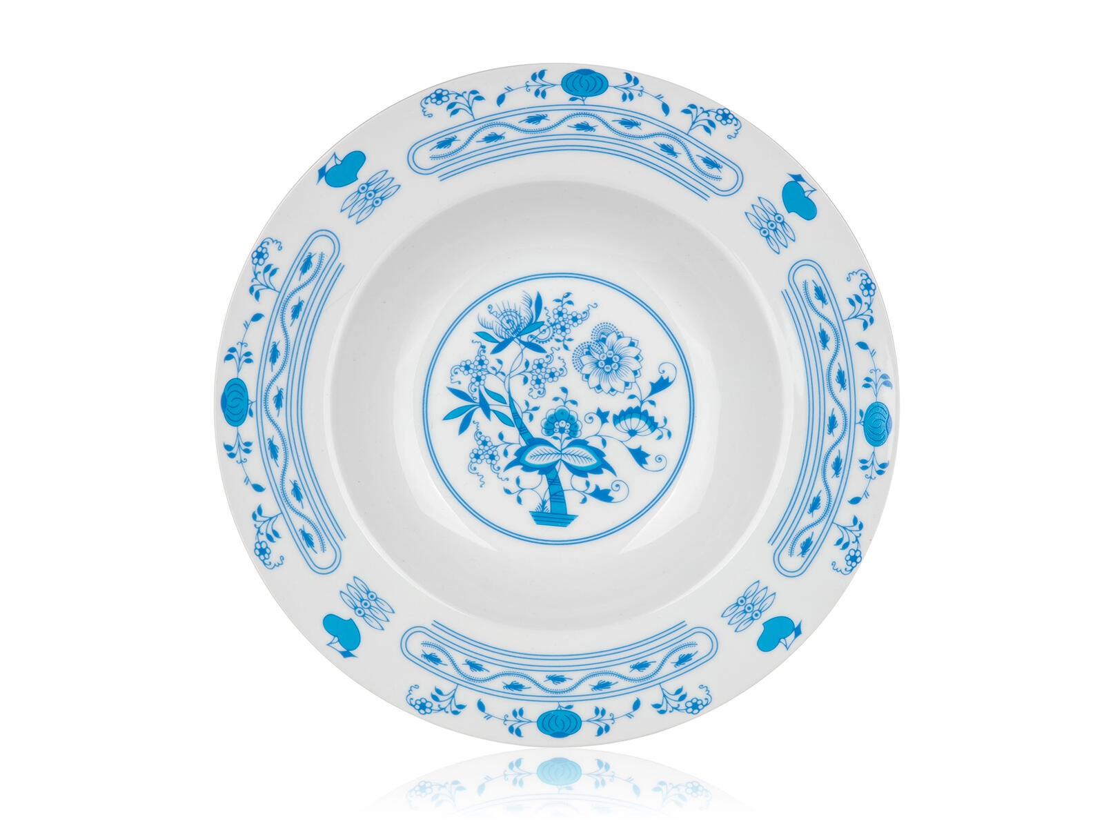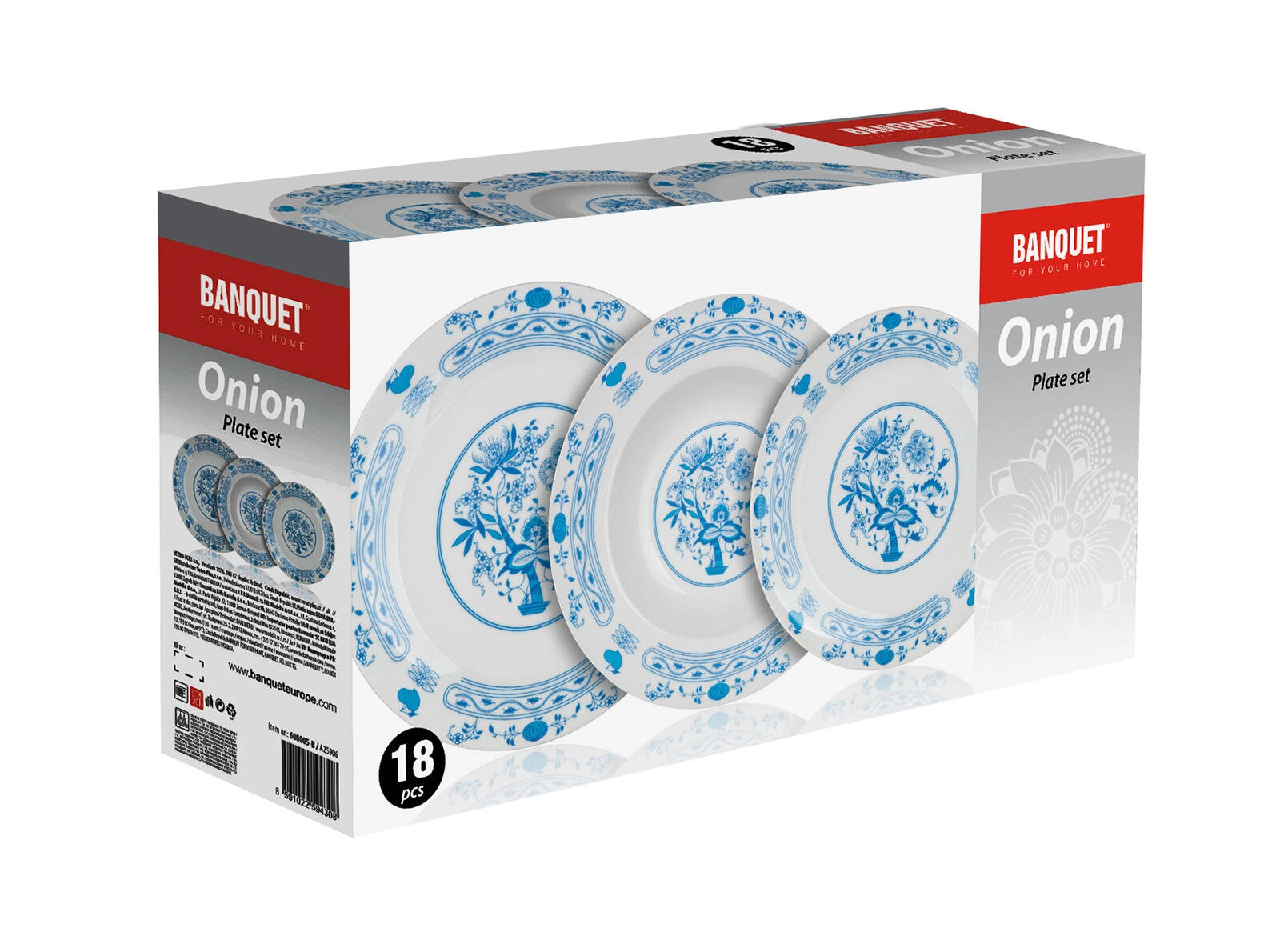 Elegancki porcelanowy zestaw obiadowy ONION w kultowym dekorze cebulowym doda stylu każdemu stołowi. Zawiera 18 elementów do serwowania przystawek, zup i dań głównych. Wysokiej jakości porcelana jest odpowiednia do zmywarki i kuchenki mikrofalowej, dzięki czemu świetnie sprawdzi się na co dzień i podczas uroczystych posiłków.