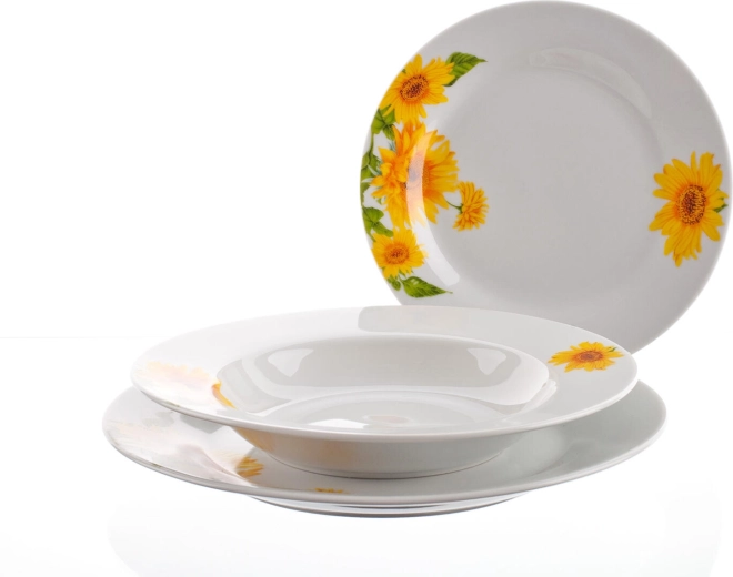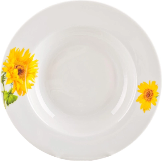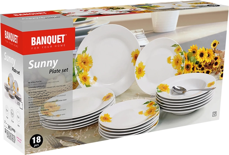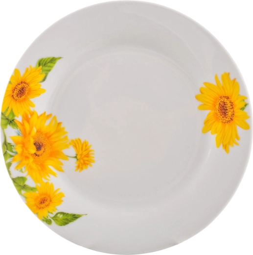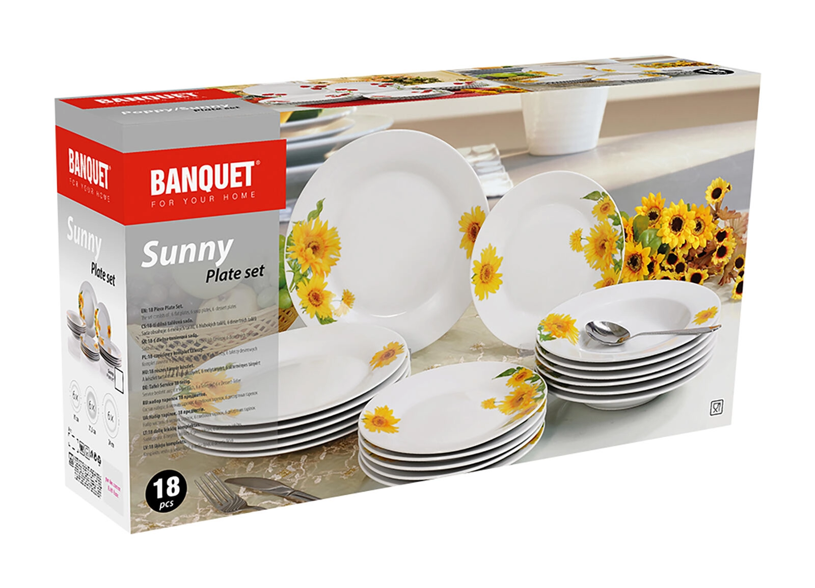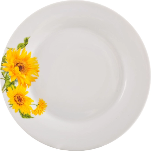 Zestaw obiadowy SUNNY w ponadczasowej bieli ze słonecznikowym motywem wniesie do domu radość i świeżość. Wysokiej jakości porcelana gwarantuje komfortowe serwowanie, trwałość i łatwą pielęgnację, a błyszcząca glazura podkreśla walory estetyczne.