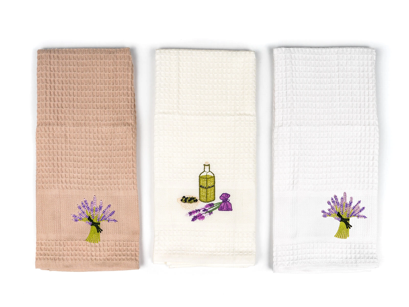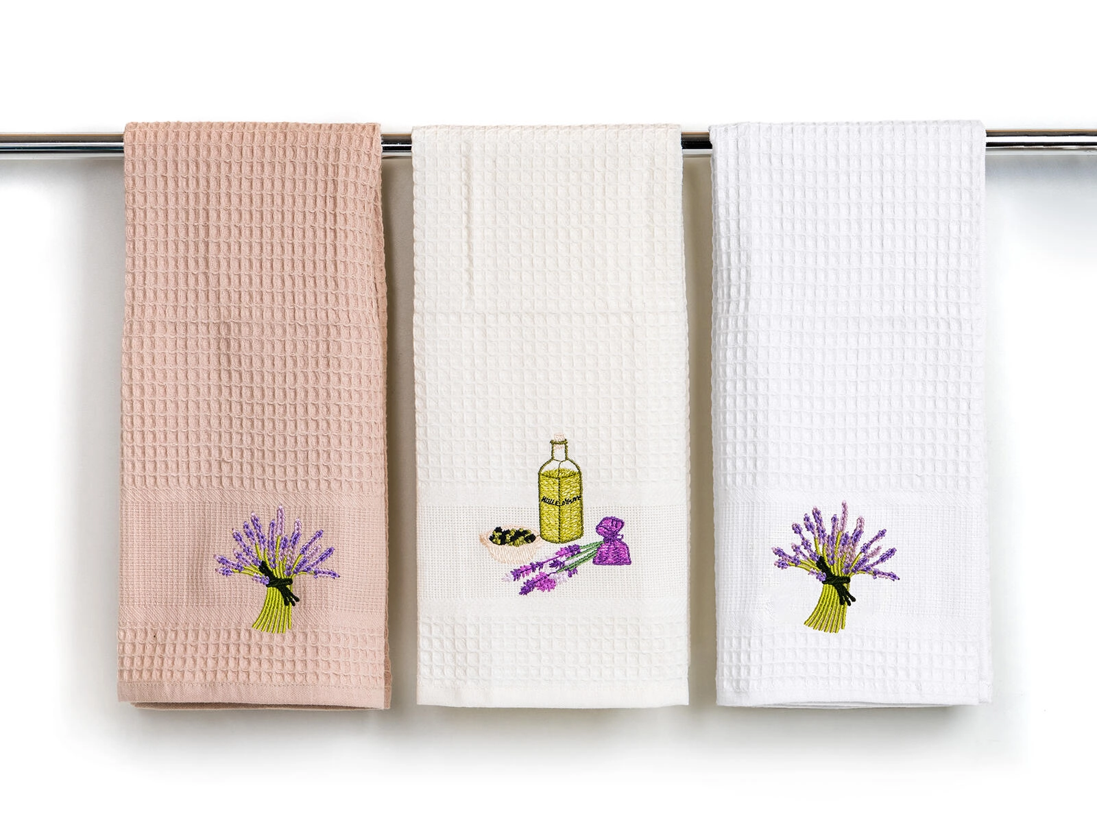 Kuchenne ściereczki z haftem Lavender 45 × 70 cm, bawełna, zestaw 3 szt.