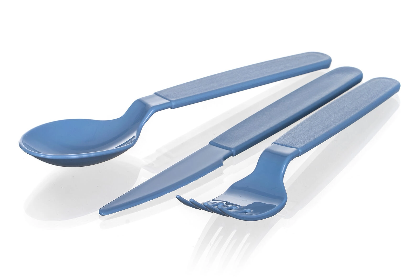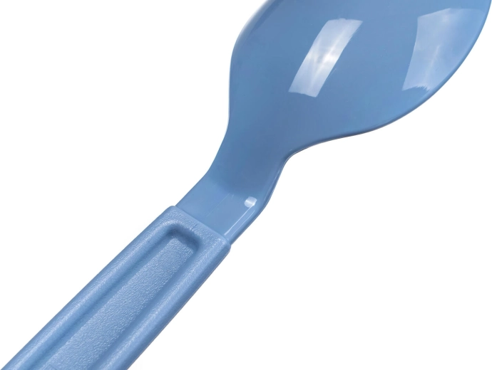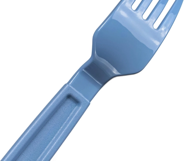 Grubsze rękojeści zapewniają pewny chwyt i wygodę podczas jedzenia, a mocny plastik wytrzymuje codzienne użytkowanie w domu i w podróży.