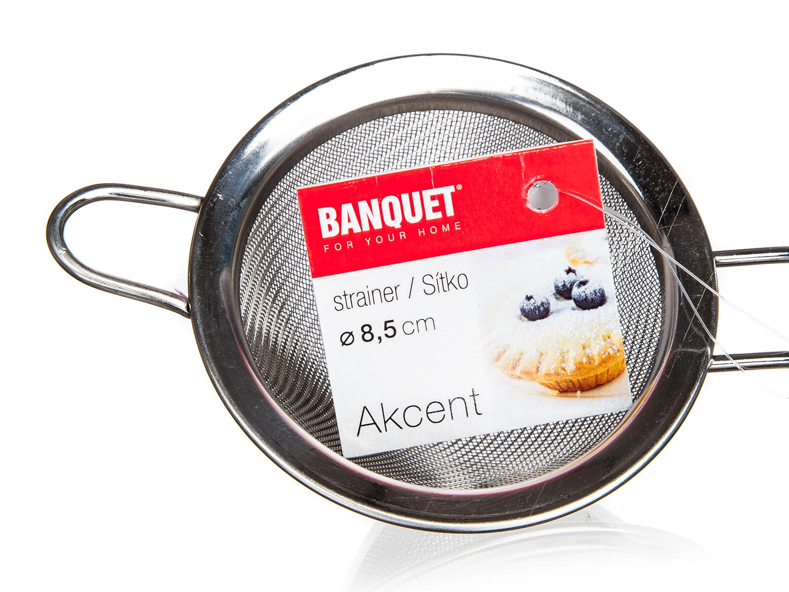 Praktyczne stożkowe sitko kuchenne AKCENT o średnicy 8,5 cm z wysokiej jakości stali nierdzewnej do codziennego użytku. Idealne do cedzenia płynów, przesiewania sypkich składników oraz prac wykończeniowych w kuchni. Dzięki drobnej siatce ze stali nierdzewnej wychwytuje małe cząstki, a oczko do zawieszania ułatwia przechowywanie.