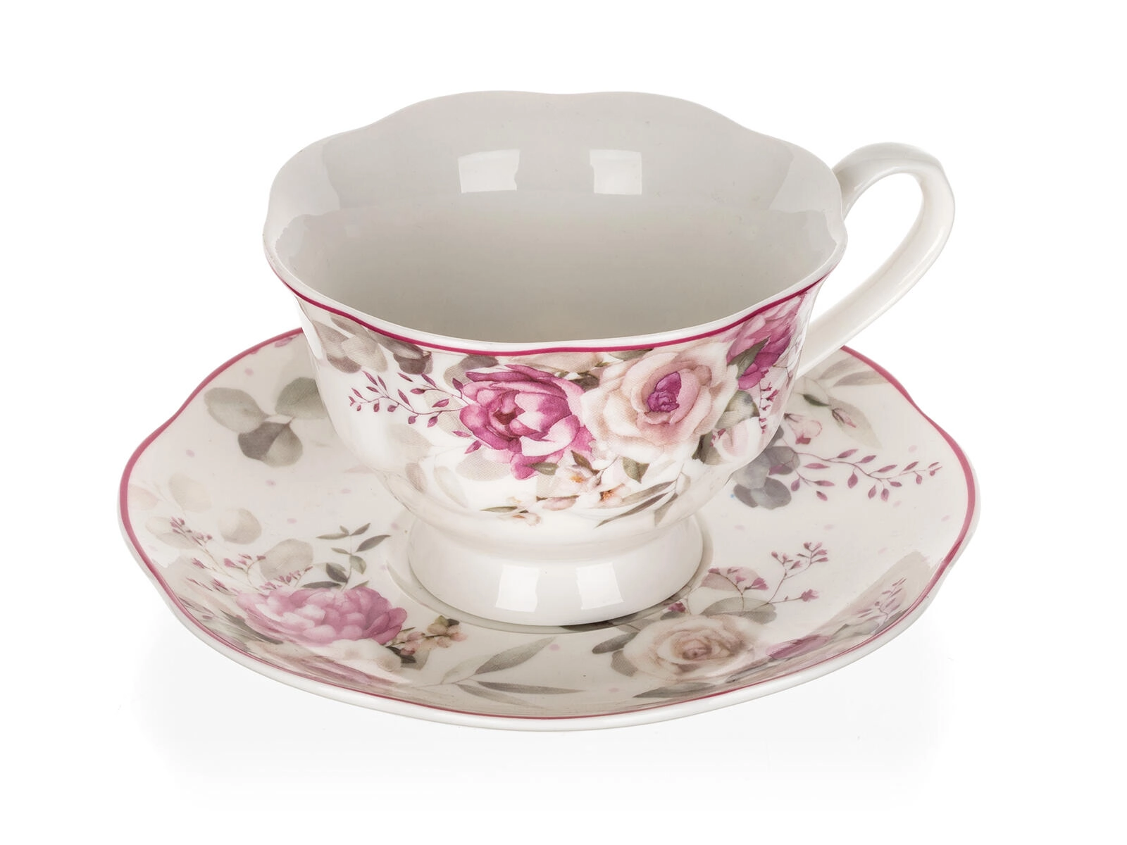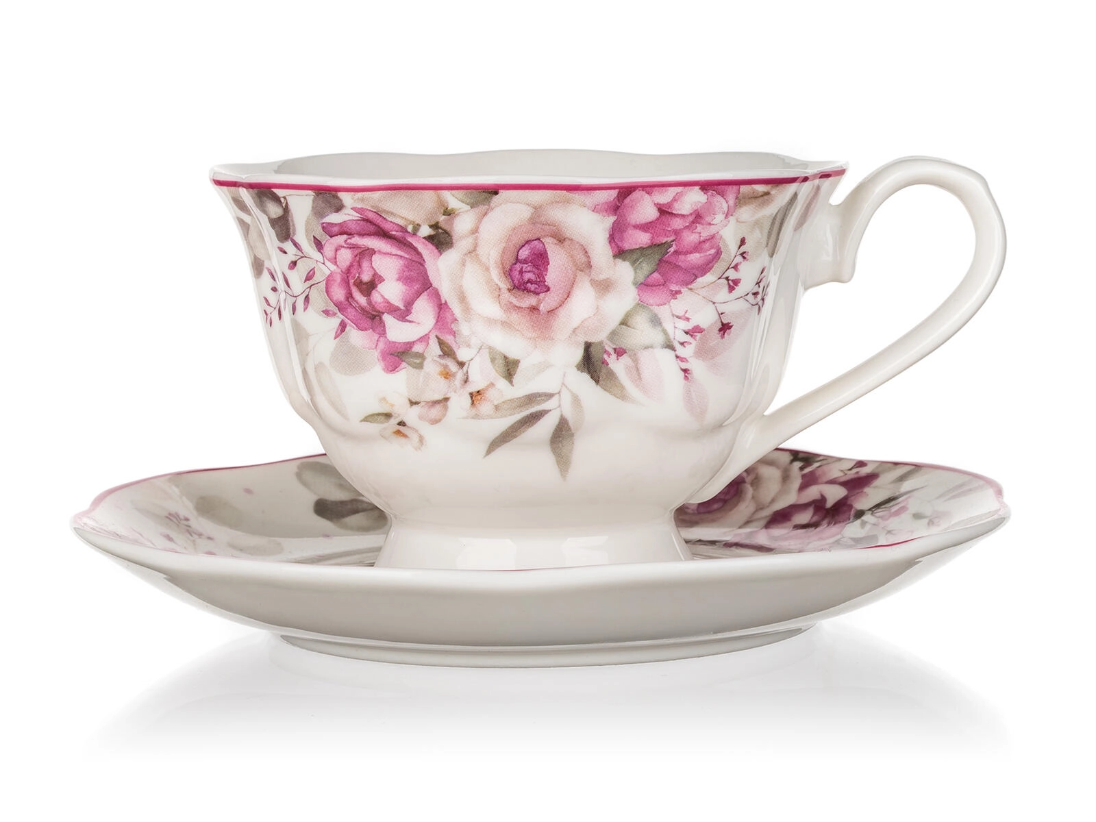 Elegancka filiżanka ze spodkiem ROSE o pojemności 220 ml, wykonana z wysokiej jakości ceramiki, idealna do codziennego oraz odświętnego serwowania kawy i herbaty. Delikatny kwiatowy motyw z różami doda nakryciu stołu romantycznego charakteru, a praktyczne cechy – można myć w zmywarce i używać w kuchence mikrofalowej – zapewniają łatwe użytkowanie i pielęgnację.