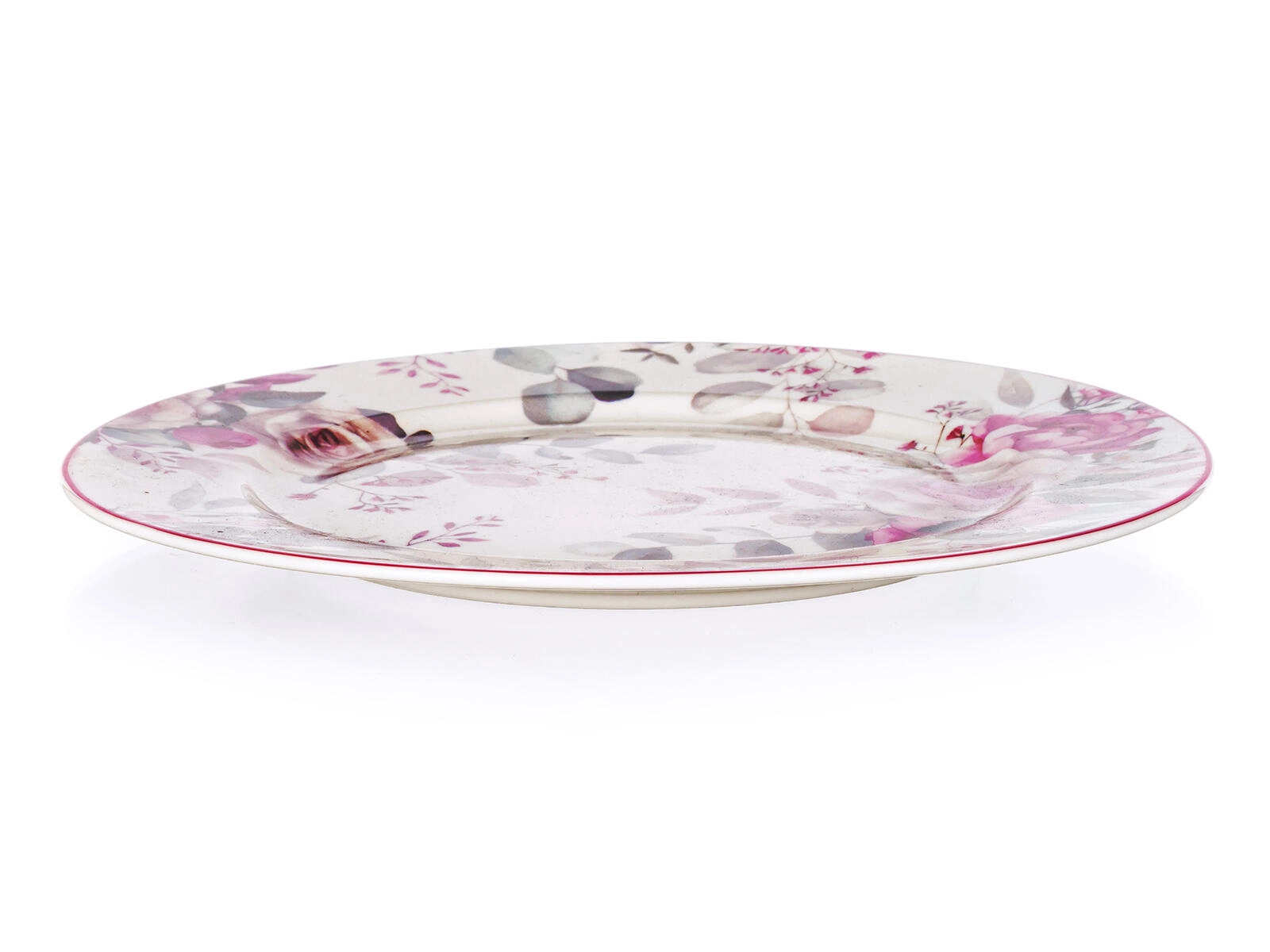 Ożyw swój stół ponadczasowym talerzem deserowym ROSE z delikatnym kwiatowym wzorem róż w odcieniach różu i szarości. Idealny do serwowania deserów, przystawek czy mniejszych porcji, doskonale pasuje zarówno do nowoczesnego, jak i rustykalnego stylu nakrycia stołu.