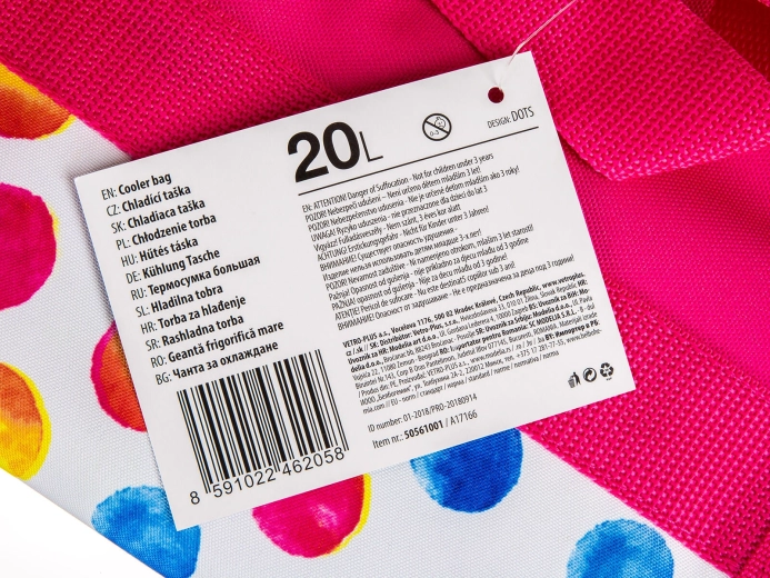 Stylowa torba chłodząca o pojemności 20 l utrzyma Twoją żywność i napoje dłużej świeże na plaży, pikniku i podczas kempingu. Dzięki wysokiej jakości izolacji z pianki PE oraz wytrzymałemu poliestrowi oferuje doskonałe właściwości termoizolacyjne, łatwą pielęgnację i praktyczne wymiary 34 × 17 × 34 cm. Kolorowy motyw grochów w biało-czerwonym wydaniu doda Twojemu wyposażeniu radosnego stylu.