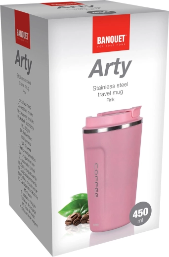Ciesz się ulubionym napojem w podróży z kubkiem termicznym ARTY 450 ml. Zewnętrzna część wykonana jest z wytrzymałej stali nierdzewnej 201, wnętrze ze stali nierdzewnej 304 bezpiecznej w kontakcie z napojami. Próżniowa, dwuwarstwowa konstrukcja poprawia izolację termiczną i wydłuża utrzymanie temperatury. Różowe wykończenie doda Twojemu dniu charakteru.