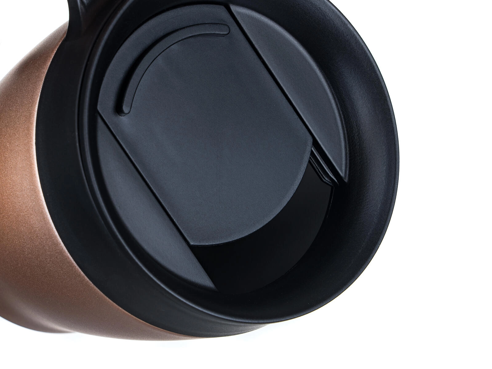 Pokrywka z przesuwną klapką ogranicza niechciane rozlanie i umożliwia wygodne picie. Do transportu zalecamy trzymać kubek w pozycji pionowej.